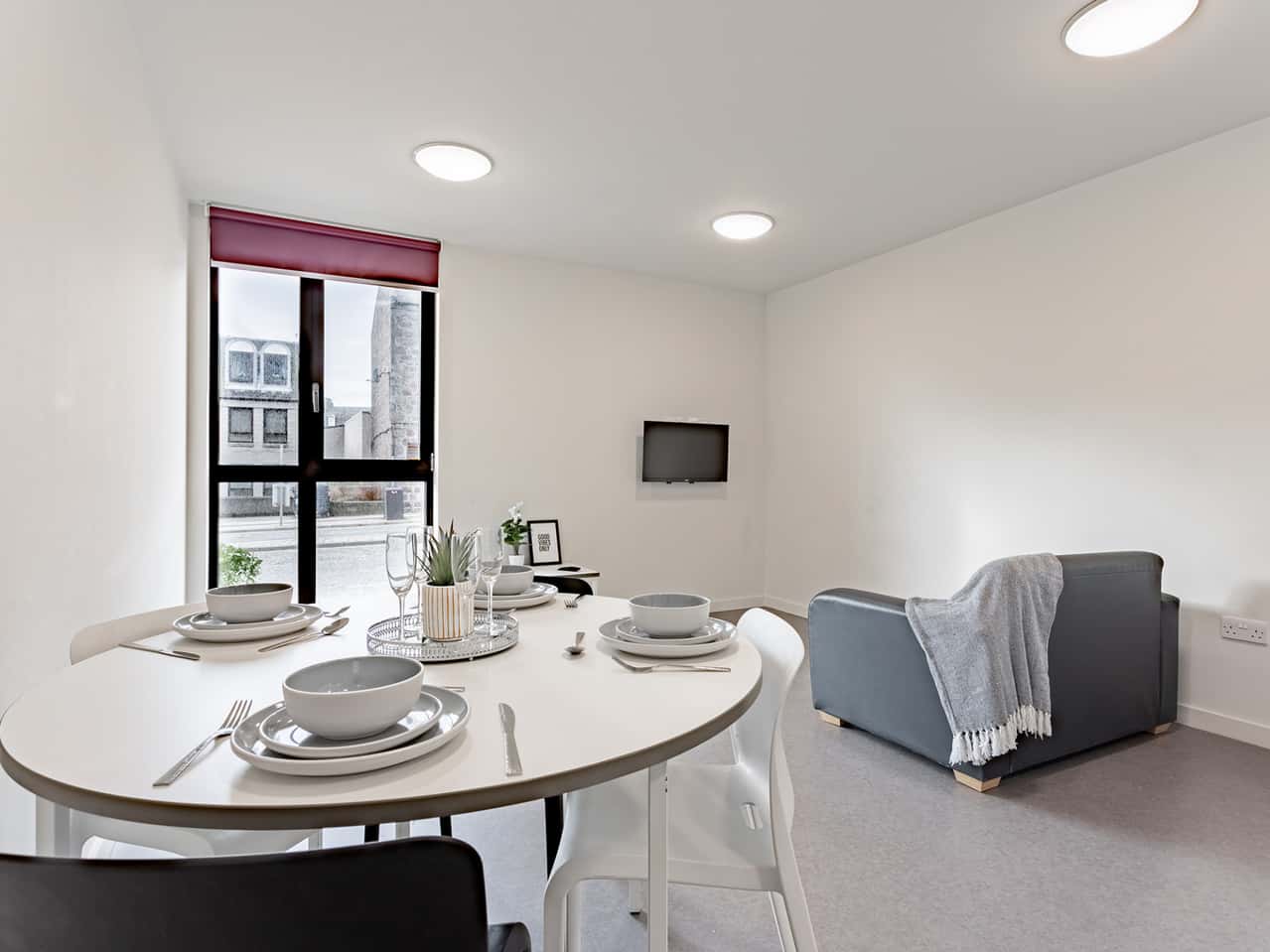 Fancy living with your bestie? Our 2-bed apartment has two en suite bedrooms that measure 13m² with plenty of storage and a comfy bed to sink into after a long day. The room has your own study desk with 3 drawers, a notice pin board, desk chair and a wardrobe. For the ultimate chilled vibes, relax in the communal lounge with sofas and catch up on your fave TV show. Fancy a workout? Break a sweat at our new on-site gym with top quality equipment all right on your doorstep. When it’s time for food, impress your mate with your cooking skills in the kitchen which includes an oven, microwave, kettle, toaster and dining table.