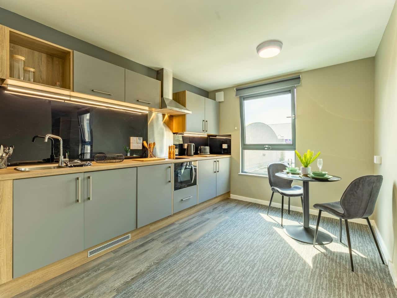 Our 1 Bed Apartment measures 26.9sqm and offers the ultimate luxury space for students. Equipped with a snug bed, modern kitchen area, en-suite bathroom and tons of storage for you to keep your belongings organised as well as your own desk space and chair for cracking on with uni work. You’ll also have your own lounge space for sitting back and chilling after a hard day’s work! If you want to meet other residents at Justice Mill Studios, there’s plenty of communal spaces including our cinema room where you can have film nights or watch sports matches, our private dining room where you can have a dinner party, and our on-site gym where you can reach your fitness goals. The best part? All bills are inclusive in the rent and we have free Wi-Fi, secure bike storage, and secure door fob entry. You’ll feel right at home here, sort your room out for the next academic year now! Dual occupancy available at an additional £50 per month.