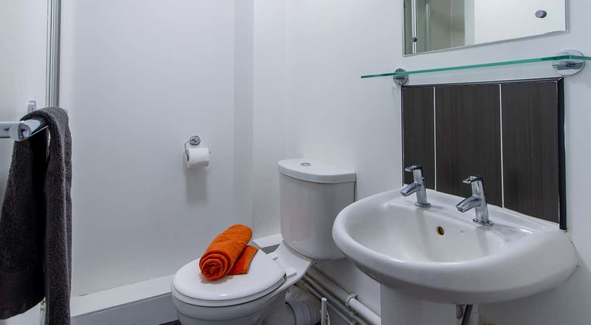 Your Silver Single with View is a light and airy space with a beautiful view of the Sea! It comes with a single bed, study desk & chair, wardrobe and drawers, and private pod bathroom. Modern shared area for relaxing and cooking. All images are indicative and some facilities may vary. These Ensuites come in clusters of 3 or 4 beds.