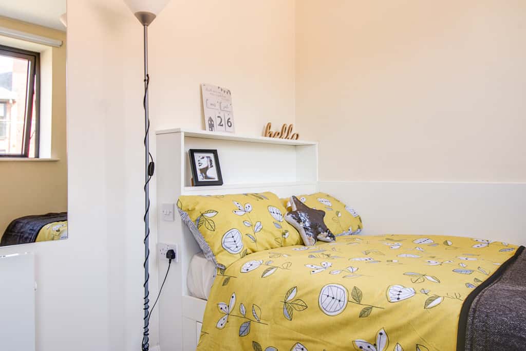 Welcome to our Gold Ensuite, located in Llys Y Deon! If you’re looking for a social apartment with the luxury of your own privacy, measured approximately 17.7m2, this is the room to choose. Gossip away with your new flatmates on your comfy sofas, or prepare to cook up a delicious treat in your shared kitchen. Need some time on your own? Lucky for you, you can head to your bedroom and relax in your new cosy haven. Featuring a double bed, lots of storage space, a desk area and your very own ensuite bathroom, you’re guaranteed to fall in love when you first unlock your door.