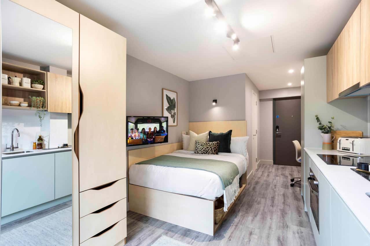 Your Premium Studio at Aster House redefines student living in Belfast's prestigious Queen's Quarter. This exclusive self-contained residence showcases a layout where premium furnishings meet intelligent functionality. Enjoy your own kitchenette for culinary exploration and a luxurious en-suite bathroom – everything you need is within your personal sanctuary. Situated on the coveted University Road, you're perfectly placed for Queen's University, with the serene Botanic Gardens and Belfast's vibrant café culture right on your doorstep. With all utility bills included, you can forget the hassle of bill management and embrace seamless city living. Enhance your university experience with complimentary access to our on-site gym for wellness and dedicated study spaces designed for academic excellence. Choose Aster House and discover the university lifestyle you deserve.