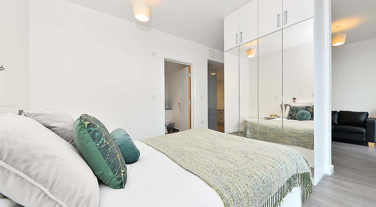 This luxury and modern apartment measures around 42.4m2 and comes with a double bed, open plan kitchen and lounge area and a large ensuite bathroom. The shared areas include study rooms and a lounge area. You will also enjoy access to the onsite gym, cinema room and games room.