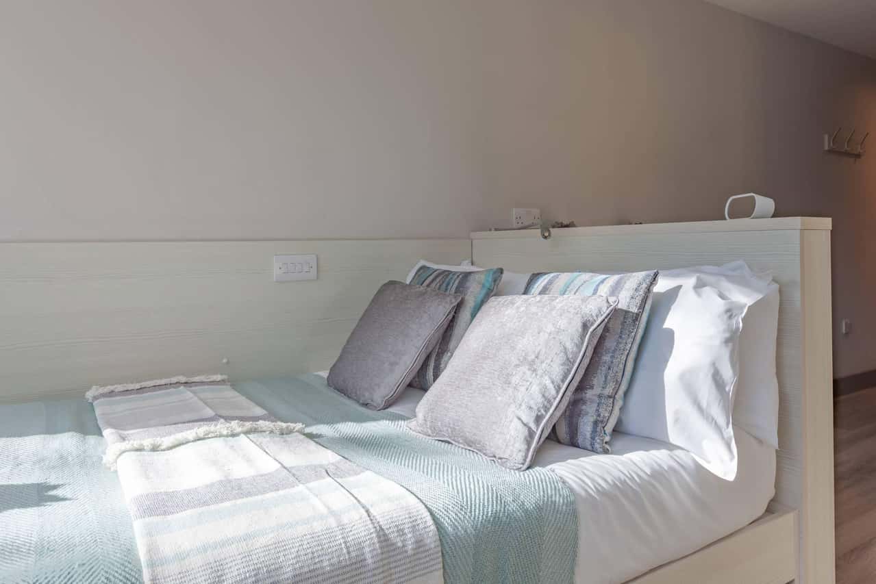 Our Standard Studios are light and airy featuring a small double bed, study area with desk and chair, loads of storage, kitchenette area with a breakfast bar, and your own ensuite shower room.