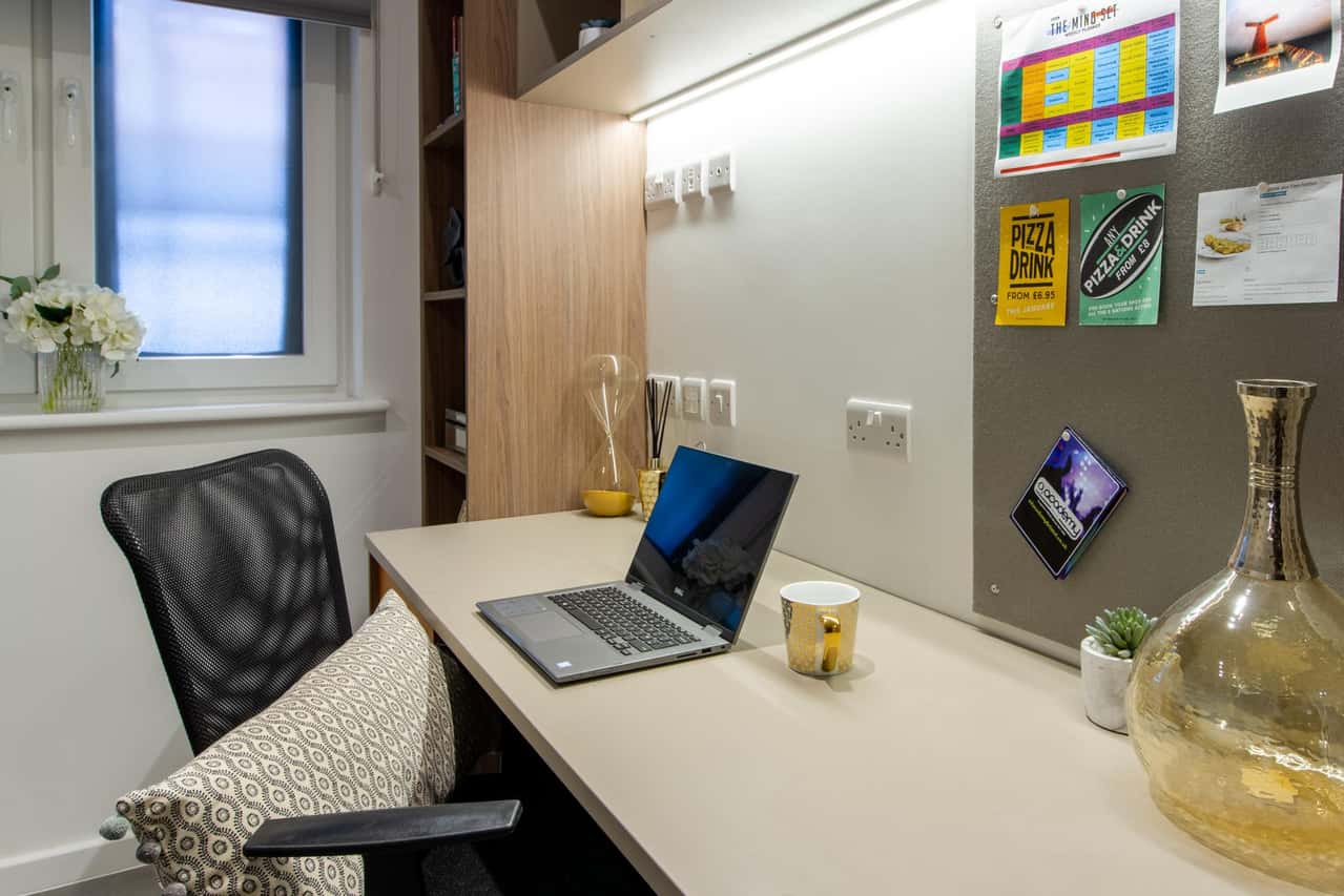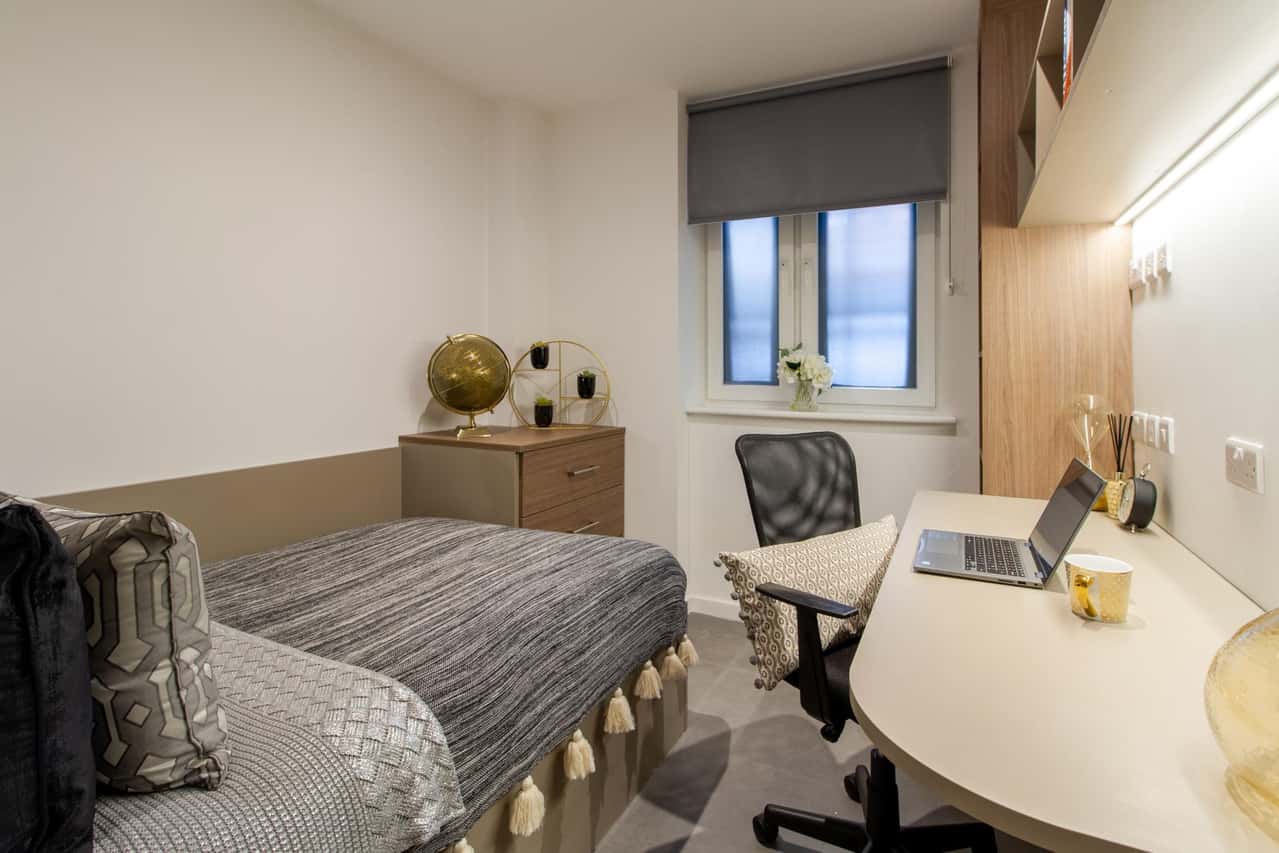 Discover a refined university lifestyle within our Classic Ensuite, nestled within sophisticated six-to-eight-bed flats. Available across all floors, this thirteen square meter room offers a curated private space featuring a three-quarter-sized bed, study area, and dedicated ensuite. Our offering is uncompromising: your rent includes Contents Insurance for your belongings, plus you can enjoy the ultimate relaxation in the building’s Cinema Lounge. This setting perfectly blends academic focus with an enriching social life within the heart of Bristol's student community.