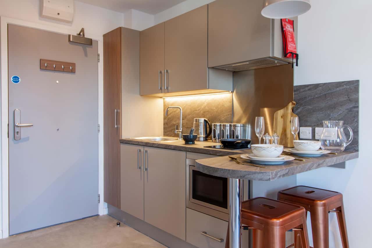 Discover the fantastic scale of the Premium Plus Studio, a truly visionary offering at twenty-six square meters, available across all floors. This elite space affords a level of room that suits your lifestyle, boasting a three-quarter-sized bed, extensive study area, full kitchenette, and private ensuite. Your stay is made simpler with All Utility Bills Included and Up to Two Hundred Mbps Internet* provided, allowing you to indulge in a seamless, state-of-the-art living environment designed for absolute focus and comfort.