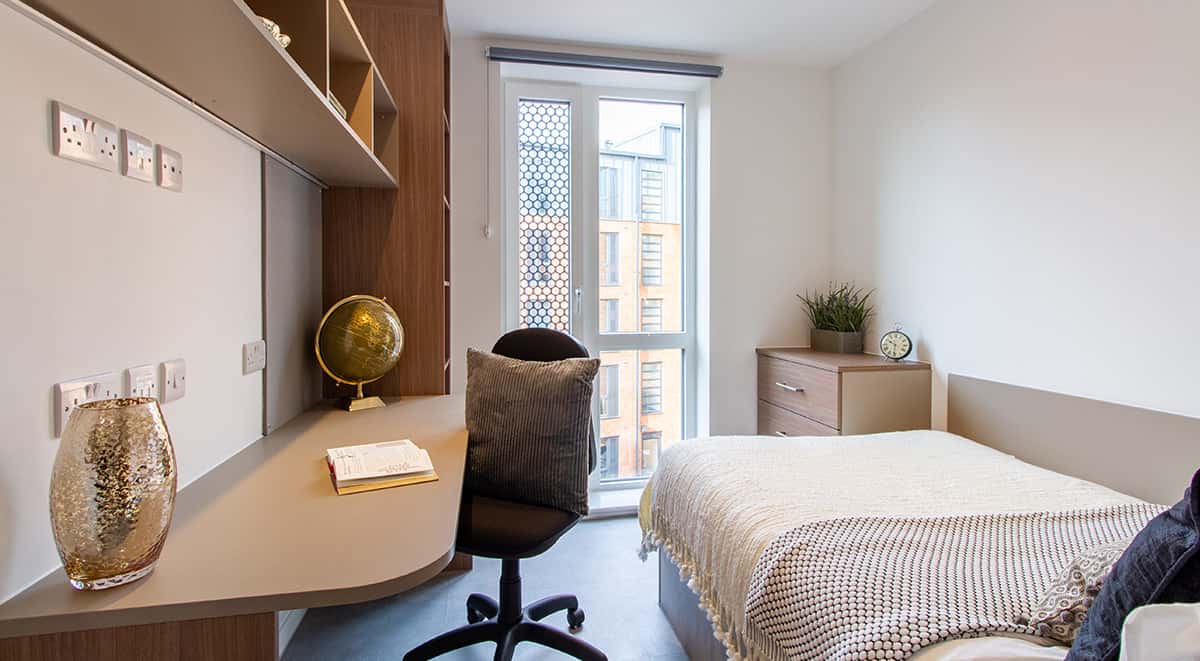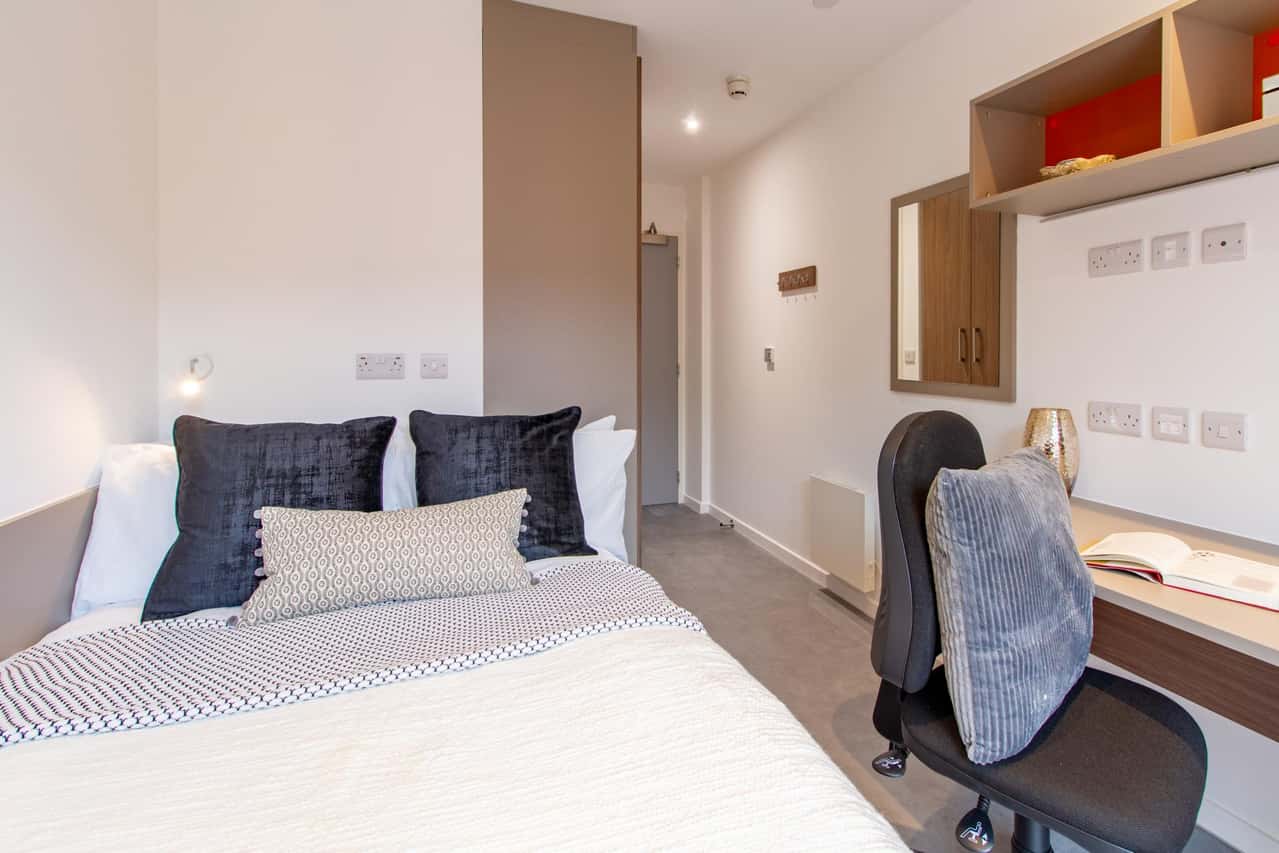 Elevate your student experience in the exclusive Premium Ensuite, located within intimate four-to-five-bed flats across all floors. At thirteen square meters, this high-end space offers privacy and comfort, complete with a three-quarter-sized bed, study area, and a private ensuite bathroom. We ensure a seamless stay with guaranteed Onsite Maintenance and the convenience of a dedicated Post Collection service alongside a fabulous array of on-site amenities. This setting provides an idyllic balance of academic focus and superior shared living in the centre of Bristol.