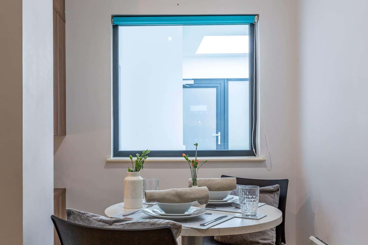 The Studio with a Bath is perfect for students who prefer their own private space. It features a comfortable bed, ample storage space, and a dedicated desk area where you can focus on your studies. You’ll have your own bathroom with a bath, giving you privacy at any time. The kitchen is fitted with all the essential amenities, so you can whip up meals whenever you like, making it easy to live independently.