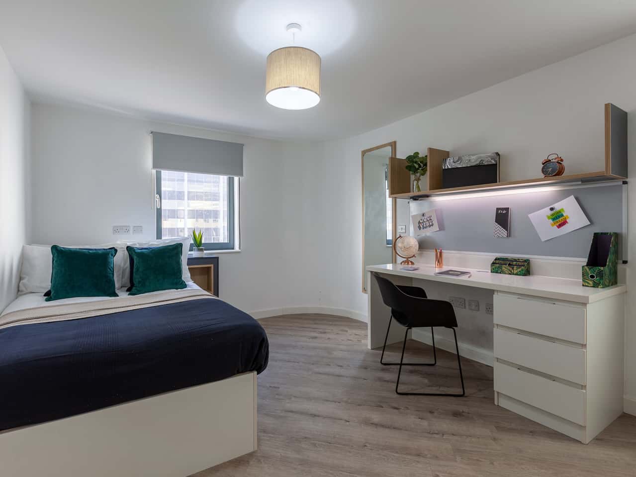 Our Deluxe Studio offers plenty of space for students, making sure you never struggle with space for your belongings! Sink into your comfy ¾ sized bed after a long day at university and enjoy the peace of your own private ensuite. Cook up a storm in your very own kitchen, which has state-of-the-art features including a combination oven, an integrated fridge, a 2 ring ceramic hob and a breakfast bar with stools! *Room size can vary from 25m2 to 26m2.