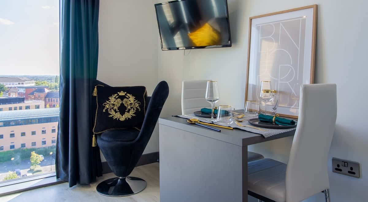 The Deluxe Studio Plus measures 23m2, and comes a fully fitted kitchenette, stylish en-suite bathroom and generous storage. Each studio boasts a three quarter bed, large study desk and chair, and a modern kitchenette, as well as plenty of floor space.
