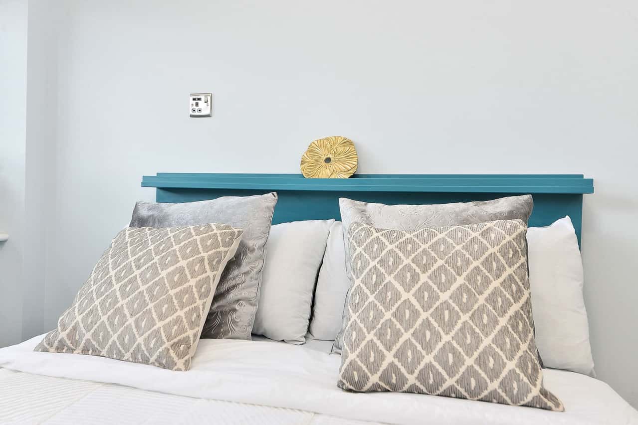 A larger 15-17m2 Deluxe self-contained Studio apartment with large bed, under-bed storage, wardrobe, bedside table, study desk, private fully fitted kitchenette and en-suite fitted with power shower.