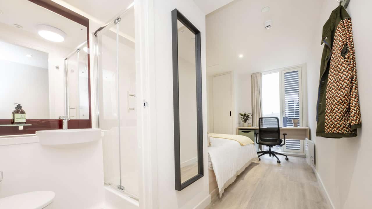 The Standard En-suite, measuring 12.2m², offers a perfect blend of comfort and sophistication. Your room features a plush bed, a dedicated study desk and chair, and spacious cupboard and bed storage to organise all essentials. With a private bathrooms, you'll enjoy convenience and privacy whenever you need it. The shared kitchen, equipped with necessary appliances and everything needed for meal prep, is ideal for students who enjoy both independence and a social cooking environment. Make the Classic En-suite yours—a perfect balance of luxury and practicality awaits!