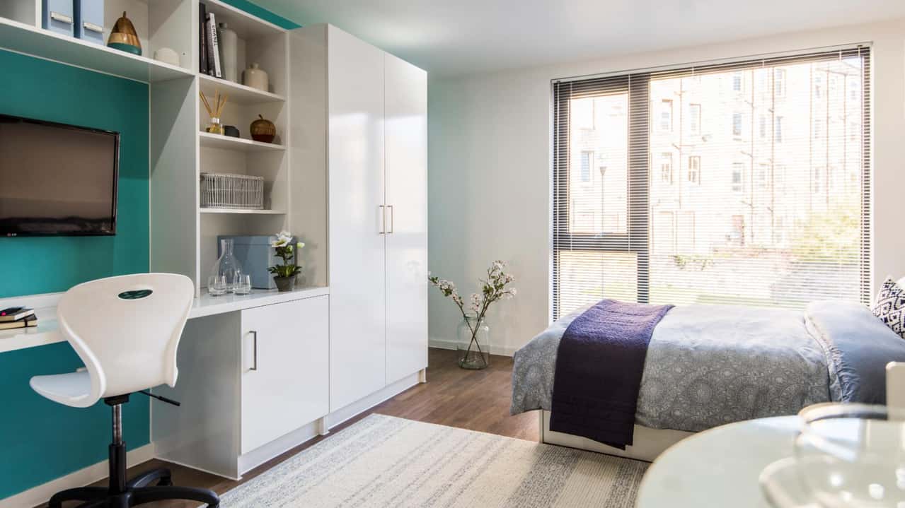 This studio offers 20m2 of space for those who want a level-up. With your very own equipped kitchenette, you can cook yourself a yummy meal before heading to the communal area or to the courtyard to socialise. We even have an on-site cinema and a gym giving you the perfect excuse to relax and unwind. With plenty of storage space and a study desk, you’ll feel right at home in a comfortable base in no time.