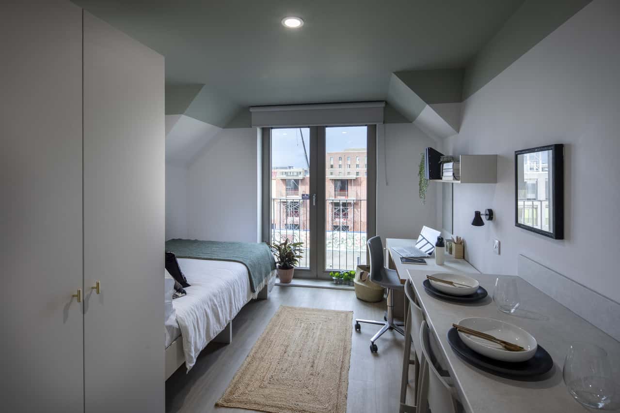Our Gold Studio apartment comes with similar features as the Silver Studio style, except with more space. Measuring 19.74sqm, you’ll find your own bed, private en-suite bathroom, kitchenette and living area. Not to mention, your room will also offer great views of the Union Canal from your very own balcony. If you want to get to know the rest of the students living at The Keel Houses, we have great communal areas such as our communal lounge where you can have a chat, or the movie room where you can unwind and watch a film, or even head to our games room to partake in some fun activities. Does this sound like your kind of place? Book with us now!