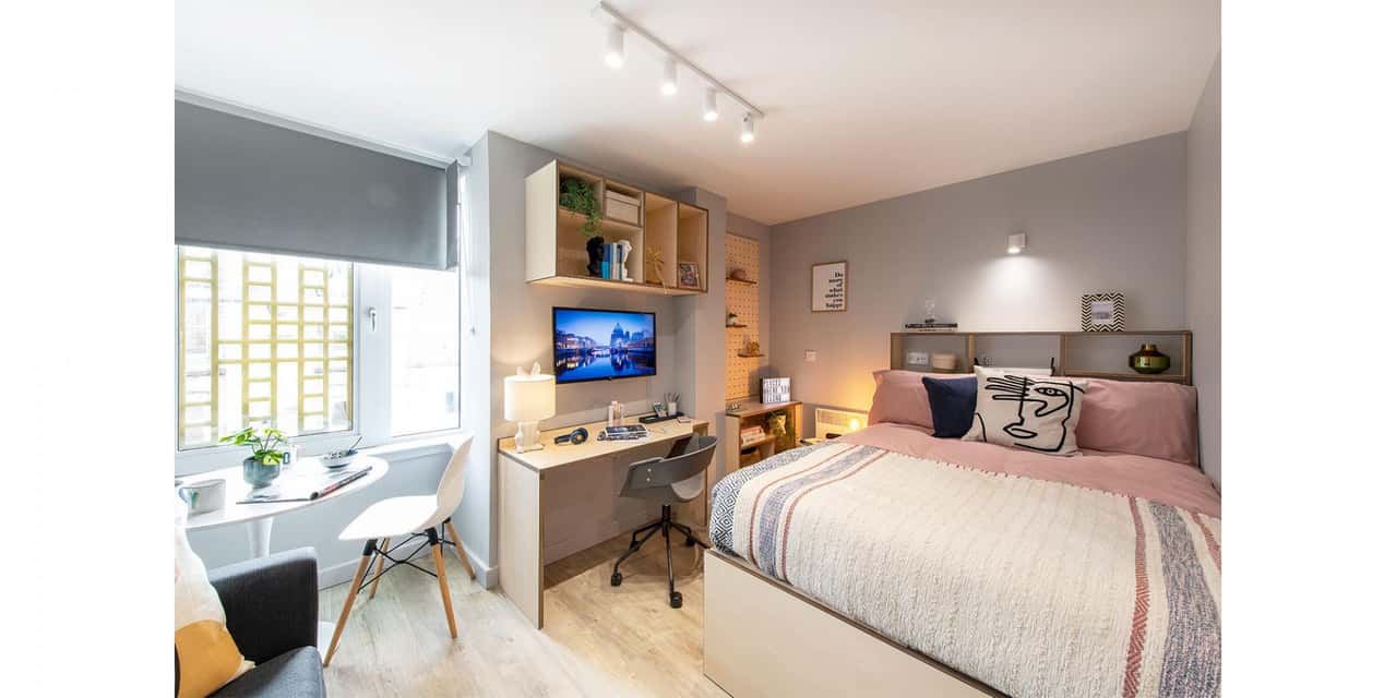 Experience luxury living in your Premium Studio, complete with a double bed with room size ranging from 21m2 to 22.8m2. Furnished with a smart TV and a dedicated study area, this studio offers ample space for relaxation and productivity. Stay organised with ample storage space, and enjoy the convenience of an en-suite bathroom and a private kitchen/dining area with integrated appliances, including a washer-dryer and dishwasher. Book your studio today!