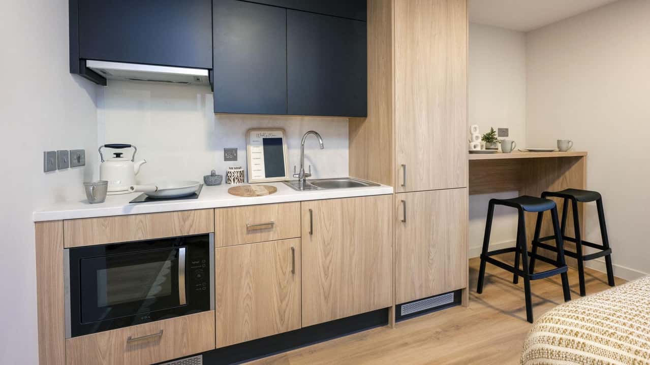 Enjoy more room and top-floor views in our Silver Plus Studio, spanning 22.1 to 23.2sqm and located on floors 5 to 7. This studio includes a comfortable bed, a private bathroom, and a study area complete with a desk and chair to create the ideal workspace. With ample storage, you’ll have plenty of room to store your essentials. The private kitchen, equipped with all you need for easy cooking, makes mealtime a breeze. Perfect for students who love a little extra space and a higher perspective—secure your Silver Plus Studio now and live in comfort and style!