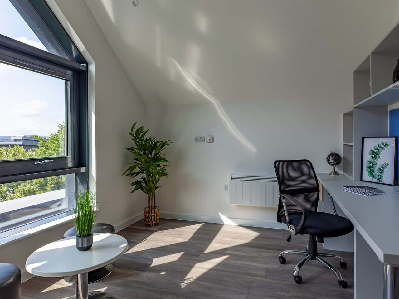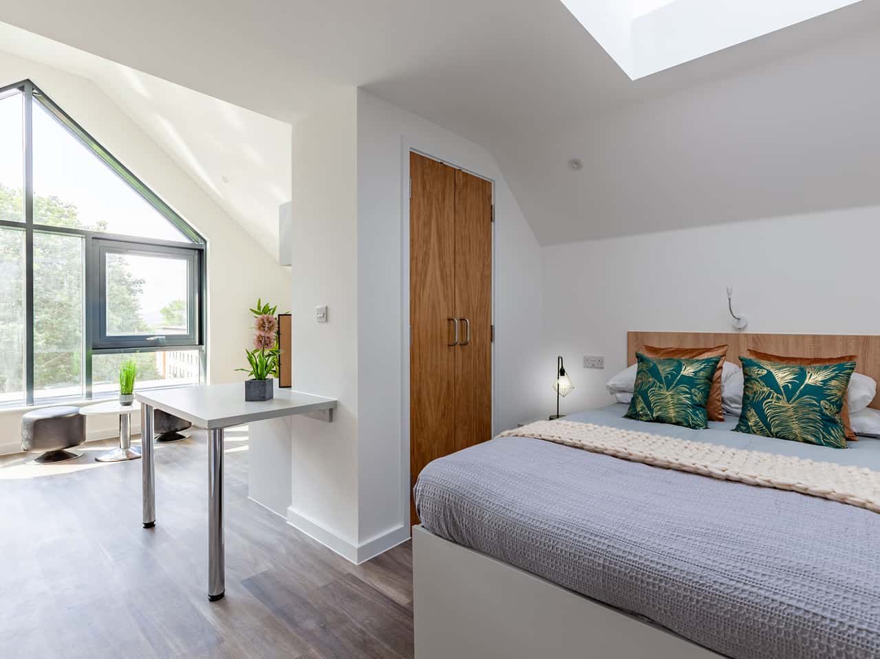 Looking to enhance your university experience? If so, why not opt to live in our Garden View Studio Accessible and thrive from the privacy of your own room? Measuring 42m2, this room style features a cosy double bed, lots of storage and your very own study area, this space is ideal for students who enjoy living in the lapse of luxury. Your new room is even equipped with modern kitchen facilities, perfect for rustling up a treat after uni.