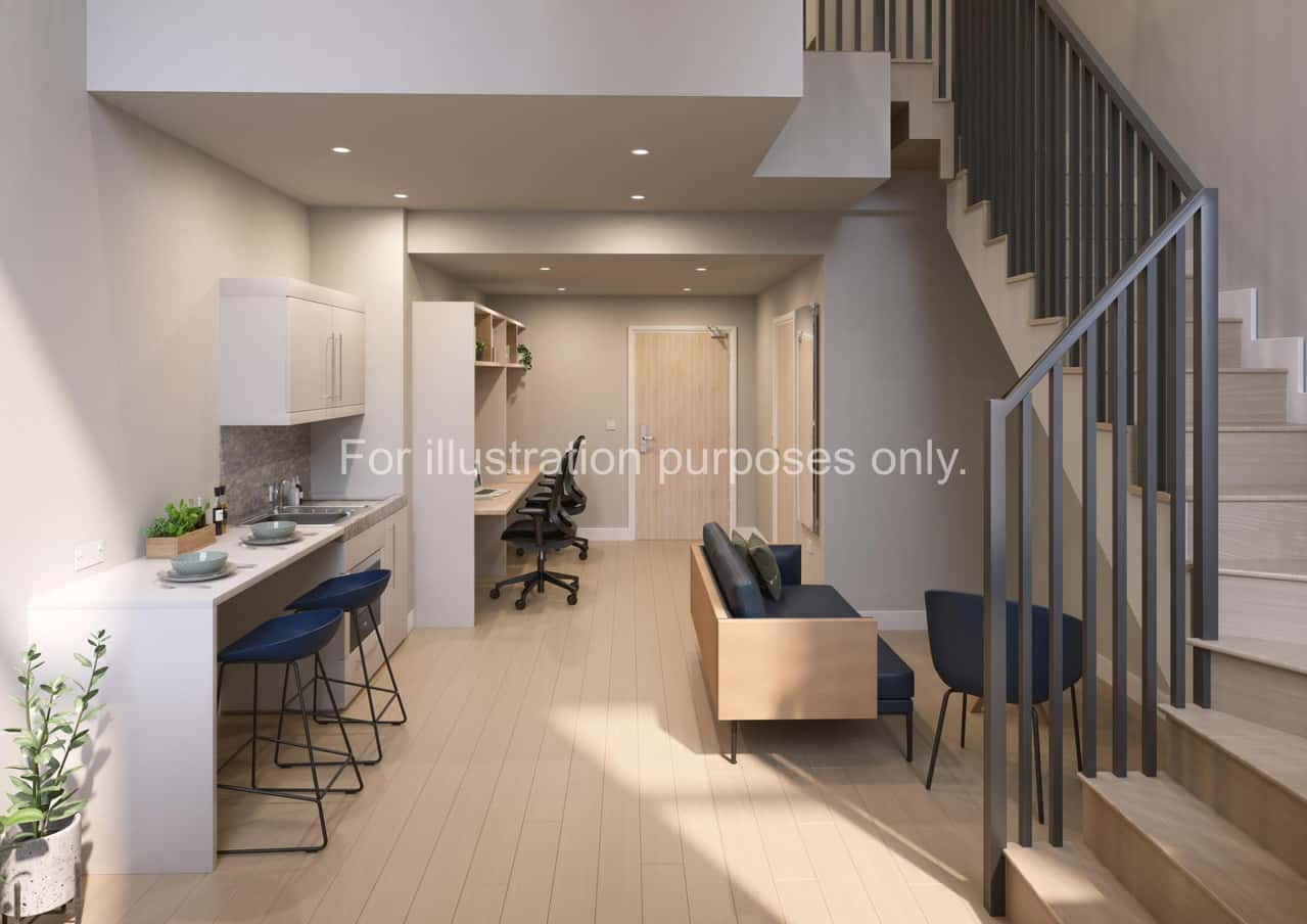 Spanning 43 square metres across two levels on the ground floor, the Twin Bed Duplex redefines Glasgow student accommodation. This refined duplex features twin beds, a dedicated study area, a private bathroom, and a fully-equipped kitchenette. The versatile two-storey layout ensures spacious living, with sleeping and relaxation spaces delightfully separated. All Utility Bills are included, streamlining your experience, whilst our Meeting Room and vibrant Communal Lounge extend your entertainment options. Choose Glasgow Citi View today, because you deserve better than ordinary.