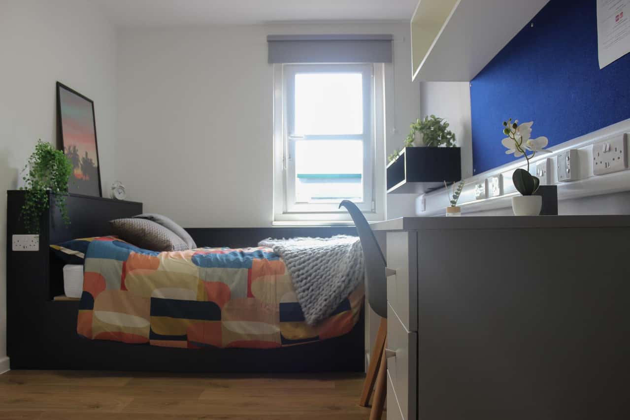 With amazing garden views our Premium Plus En-Suite is newly refurbished. This room style provides a snug environment for you to enjoy, and is equipped with comfortable furnishings - you won’t want to leave! The accommodation is super affordable, with plenty of great features for you to utilise. With a comfy small double bed, desk area and a private bathroom, you’re guaranteed to fall in love with your new room the moment you move in. Not to mention there's also great views of our garden area – what’s not to love? Book now for the next academic year!