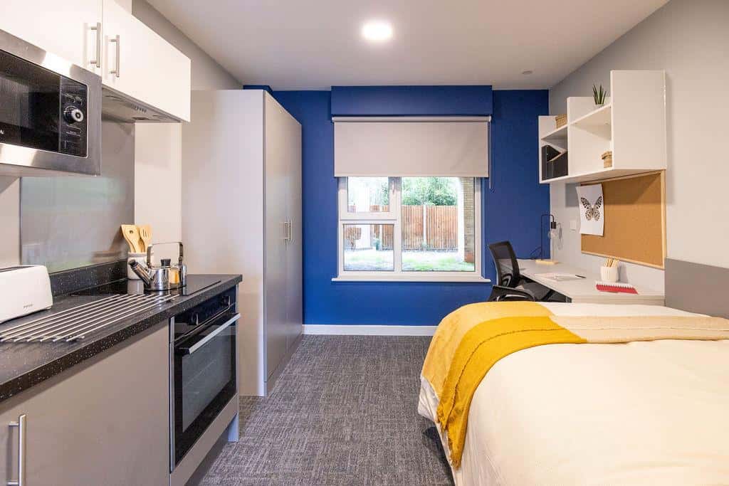 Experience luxury living in our spacious Premium Studios, ranging from 21.3m2 to 21.5m2. Enjoy the comfort of your own studio furnished with a double bed with mattress, under bed storage, wardrobe, notice board, full-length mirror, study desk & chair, and ample storage space. Refresh in your private en-suite bathroom with a shower. Cook meals in your own kitchen equipped with a microwave, built-in oven, 2-ring hob, and integrated fridge/freezer. Don't miss out, book your studio today!