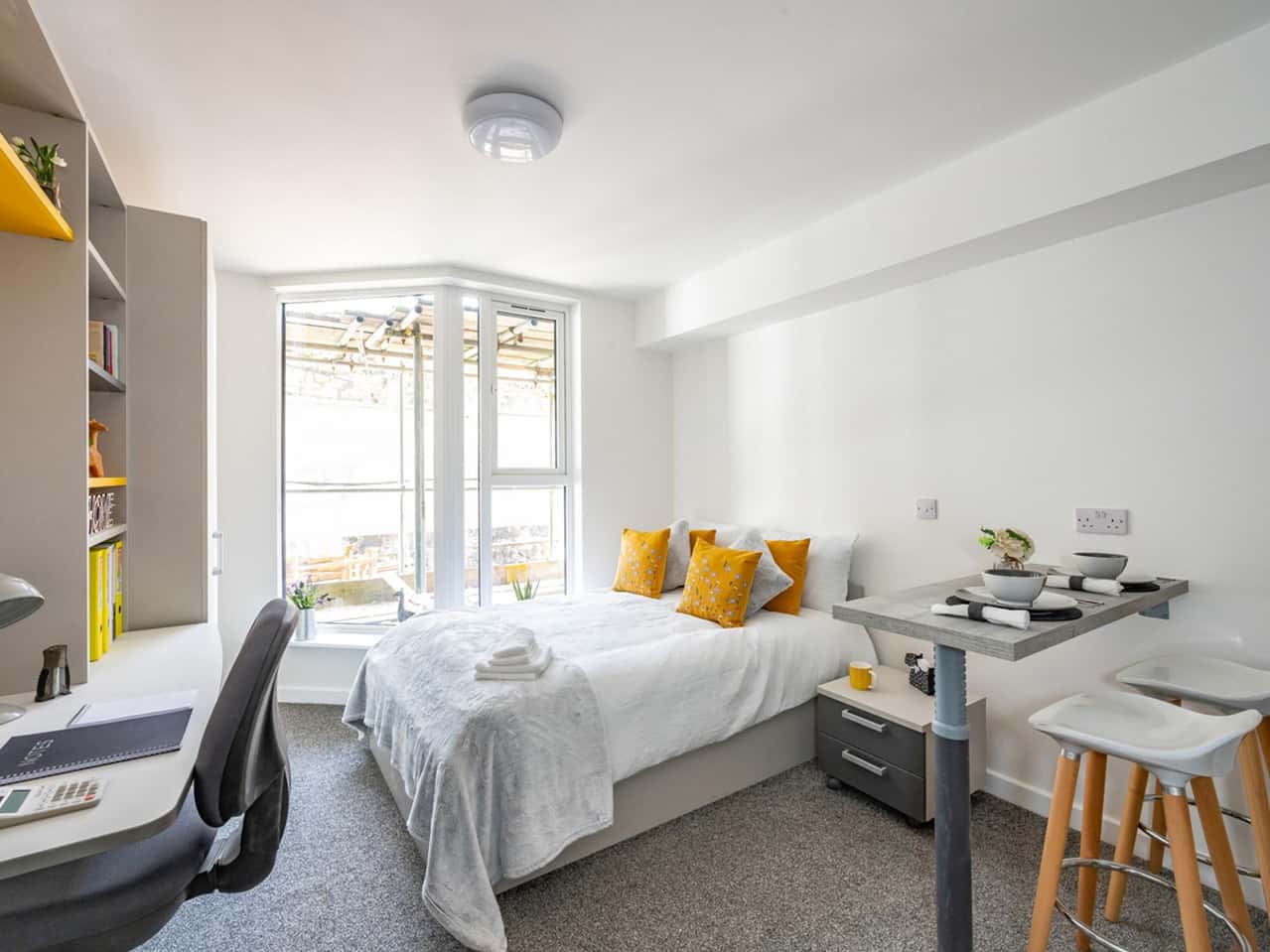 With each bedroom measuring around 11m², this comfortable loft-style apartment has 2 bedrooms and comes complete with a fully fitted kitchenette, a dining area, lots of storage space and a shared en-suite bathroom. You will also have access to the out-of-hours Key Holding Service and Student Wardens.
