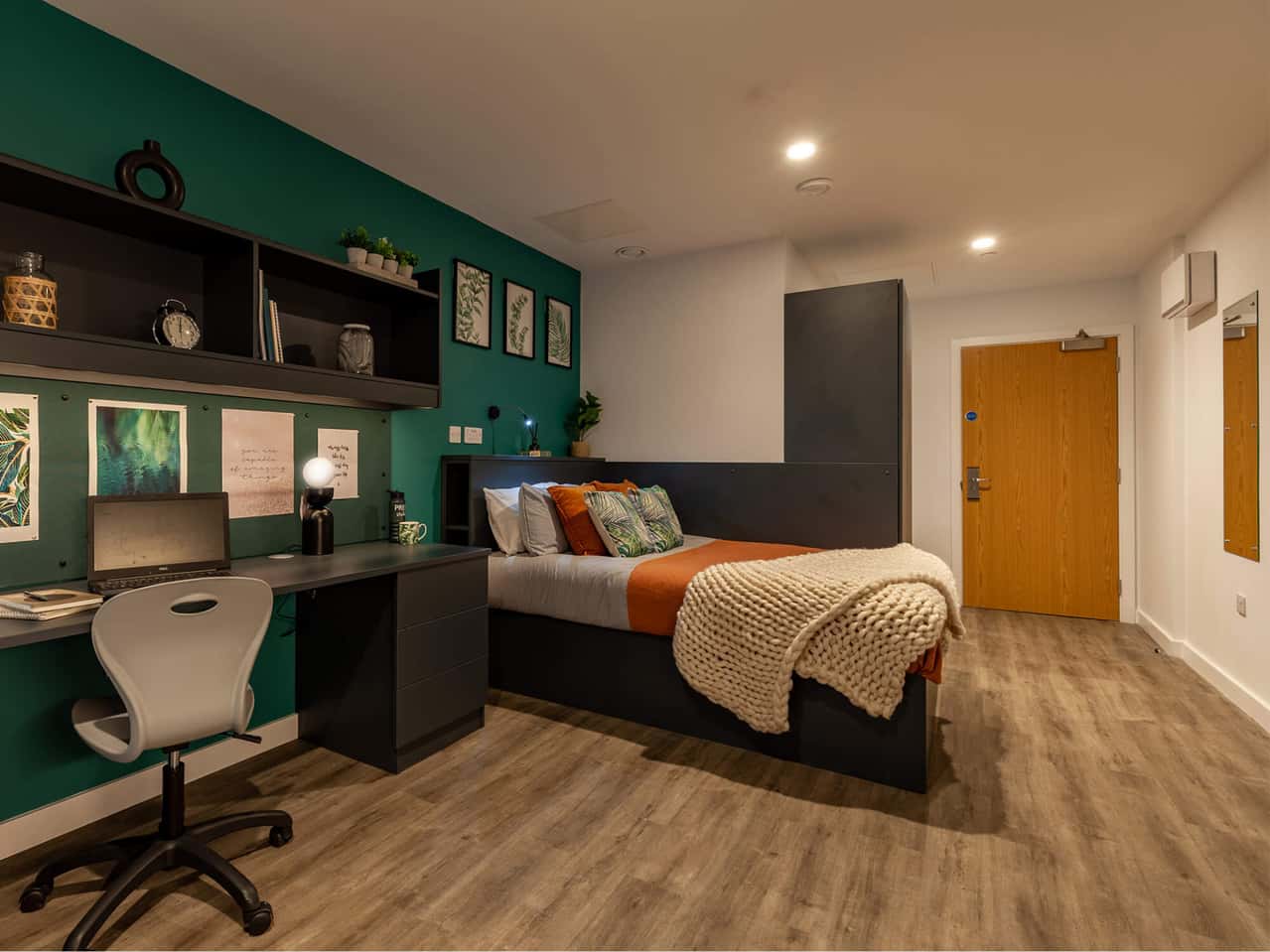 Never compromise for space when you choose our Classic Studio, offering everything you need to live the ultimate student life. It’s equipped with a snug bed to unwind after uni, an en-suite bathroom, a modern desk area and ample storage space. You’ll even have your own fully furnished kitchen with a microwave, hob, oven, fridge and cupboard space. The Terry Frost Building has on-site amenities which will guarantee you a great student experience. Watch a film and unwind with other residents in our Tv room, make friends within our lounge area or break a sweat in the modern gym. Sort your room for the next academic year now!