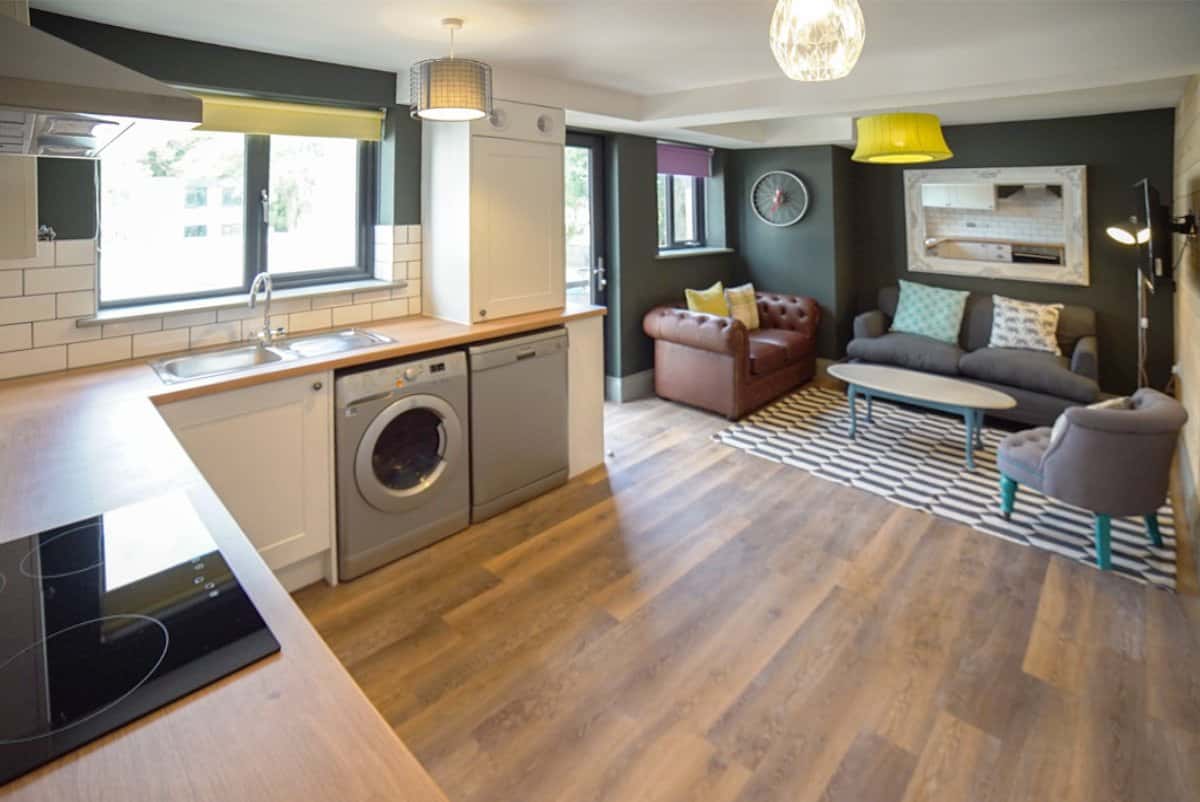 Whether you’re looking for a cosy 2-bedroom retreat or a lively 8-bedroom community, you’ll feel right at home here. Retreat to your own spacious, homely bedroom—a perfect place to unwind, recharge, and feel truly at ease. Our Gold Rooms feature a comfortable bed, a large wardrobe and study desk. You’ll also have access to a fully equipped kitchen for whipping up some new recipes, as well as a communal lounge for getting to know your flatmates or watching your fave TV shows. With everything you need for student living and all-inclusive bills, book your apartment for the next academic year!