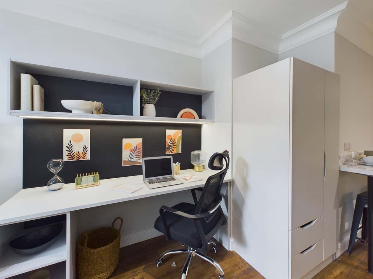 Welcome to our Classic Plus Studio, which offers a spacious living area of between 18.2 to 19.4 square metres. With everything you need for a comfortable stay, the studio is fully furnished. Inside, you'll find a desk to keep your stuff organised, a cupboard for lots of storage, and a cosy bed for restful nights. This studio ensures a tidy living space by providing a clear separation between the kitchen and the main room. There's also a tiny dining area adjacent to the kitchen, which makes for a flexible area for unwinding and enjoying meals. This studio provides you with a warm and functional home for your academic journey—the ideal balance of space and utility.