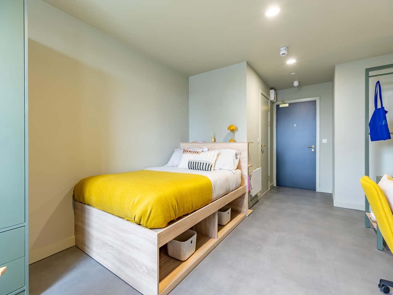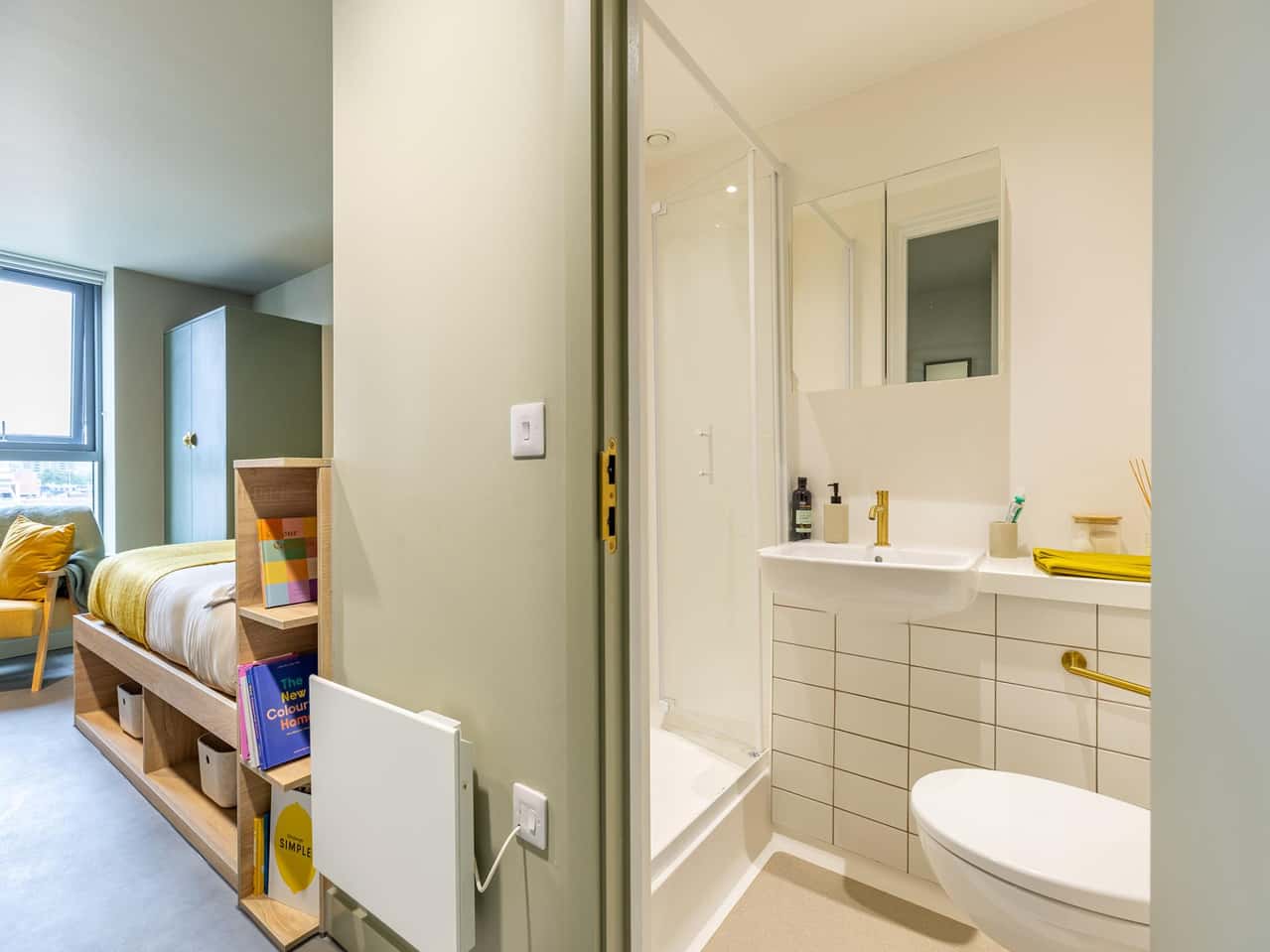 Our Classic Sky View Studio located on floors 8-9 , spanning 20.1-21.8sqm provides all the independence and space of the Classic Studio, yet with stunning views of Leeds's skyline.