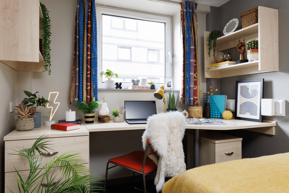 At The Tannery, our Classic Ensuite offers a little extra space to make your student life even more enjoyable. With a 12m² layout, your private room includes a 3/4 bed with under-bed storage, a wardrobe, and a dedicated study area complete with a desk, chair, and noticeboard to help you stay focused and organised.