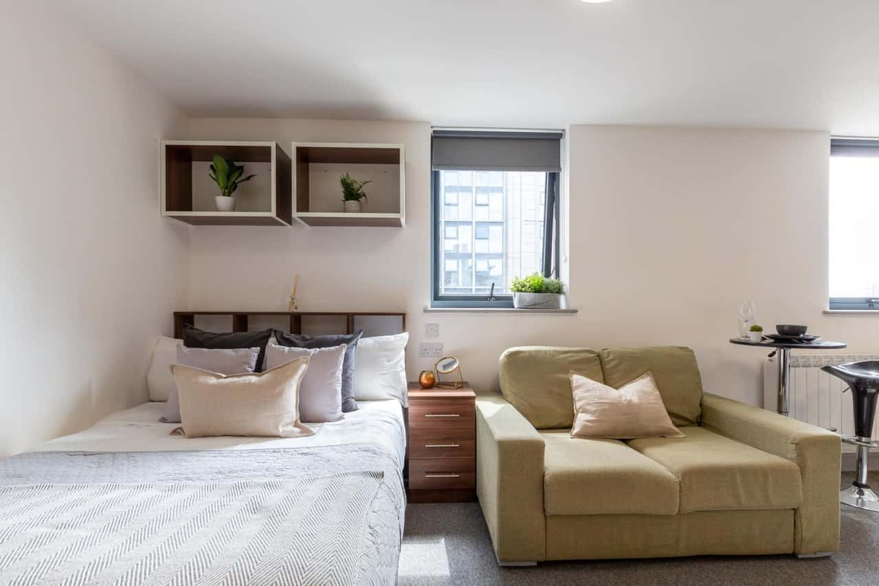 Your Standard Studio at The Foundry offers 27m² of self-contained Leeds living. This studio features a comfortable double bed with under-bed storage for keeping things tidy, a wardrobe for your essentials, a dedicated study area for getting coursework done, a fully fitted kitchenette, and a private en-suite bathroom. This room gives you proper space to study, cook, and relax without feeling cramped. All-Inclusive Utility Bills keep budgeting simple, and High Speed Internet ensures you're always connected. When you need a break, the Gym keeps you active, and the Communal Lounge is perfect for meeting mates. Choose The Foundry and take your student experience to the next level.
