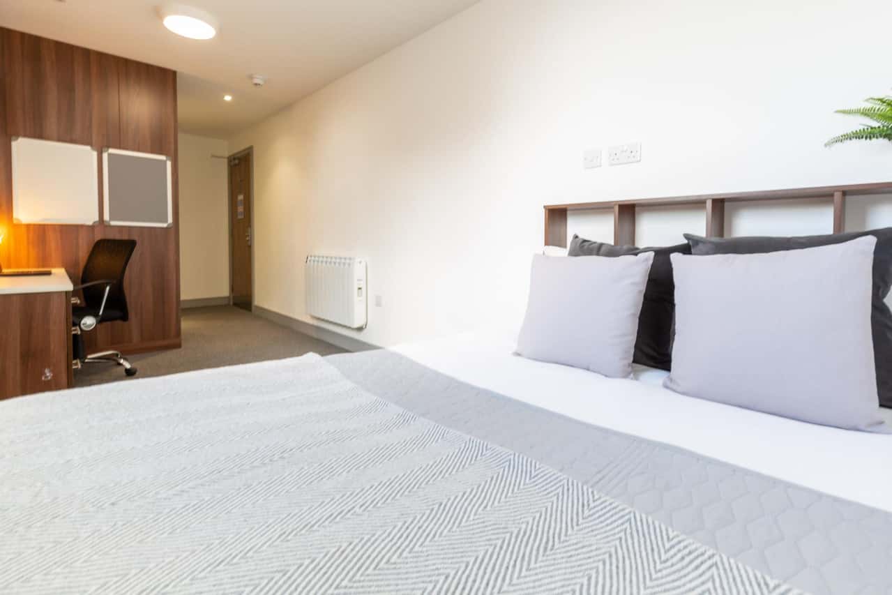Your Premium Ensuite at The Foundry gives you a generous 18m² of personal space to enjoy Leeds student life. This well-designed room features a comfortable double bed with under-bed storage, a wardrobe for keeping everything organised, desk space for getting assignments done, and your own private en-suite bathroom. Share a fully-equipped kitchen with your flatmates, creating the perfect environment for cooking together and building lasting friendships. All-Inclusive Utility Bills mean no surprise costs, while High Speed Internet keeps you connected to coursework and friends. Pop down to the dedicated Study Space when you need some quiet time, or head to the Communal Lounge for socialising with the wider residents' community. At The Foundry, you get the home from home you deserve.