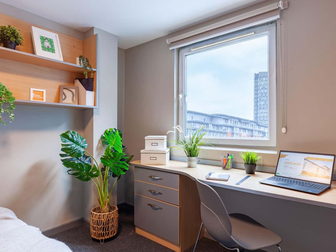 Our modern Premium Plus Ensuite is a spacious and stylish room filled with high quality furnishings and ample of storage. These spacious rooms include a double bed, a mirror, generous storage and a practical study desk and chair. You have access to a large communal kitchen area which you will share with your flat mates and is a great place to chill out and catch up. Wind down in our fabulous common room or play a quick game of pool!
