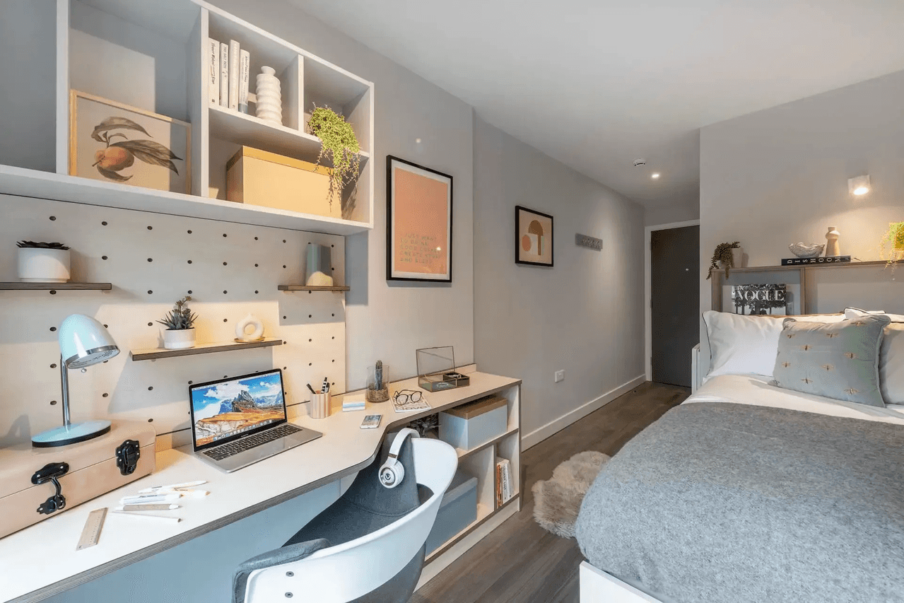 Experience independence in your Deluxe studio at The Aspen. This beautifully appointed self-contained residence features a thoughtfully designed living space with premium furnishings, a fully equipped kitchenette for culinary creativity, and an elegant en-suite bathroom. The contemporary open-plan layout maximises space and maintains an atmosphere of refined comfort, making this your own exclusive sanctuary for both academic pursuits and relaxation. Embrace effortless living with all utility bills included. Our prime central Leicester location positions you at the heart of the action, with both universities and the city's finest dining, culture, and nightlife mere moments away. Complement your lifestyle with exclusive access to our residents' gym and dedicated study spaces. Choose The Aspen to elevate your university lifestyle to new heights.