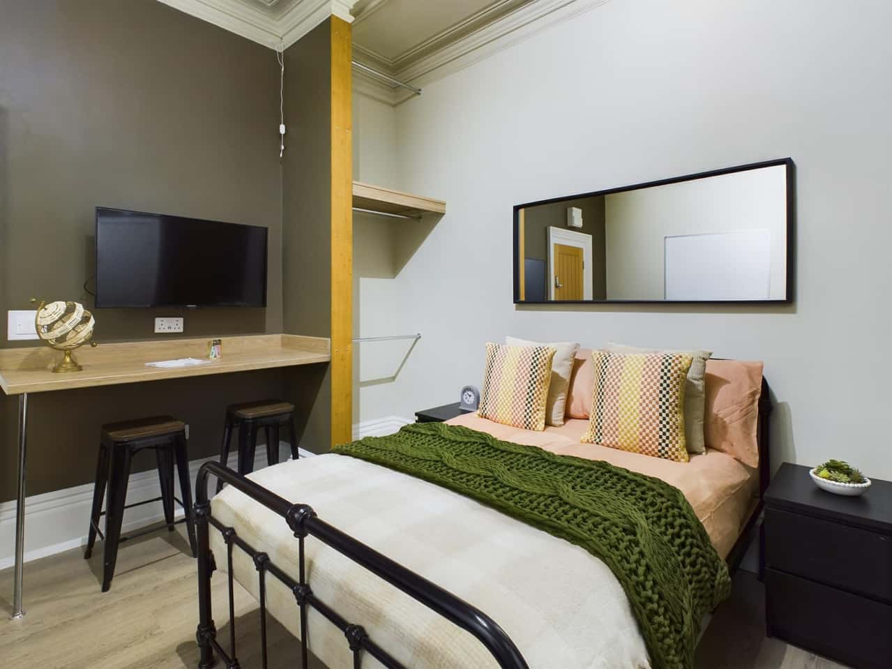 This chic property, features seven ensuite studios equipped with bathrooms, kitchens, desks, and cosy chairs, ensuring residents' comfort and convenience. Each studio is meticulously furnished with bespoke pieces for optimal comfort and style.