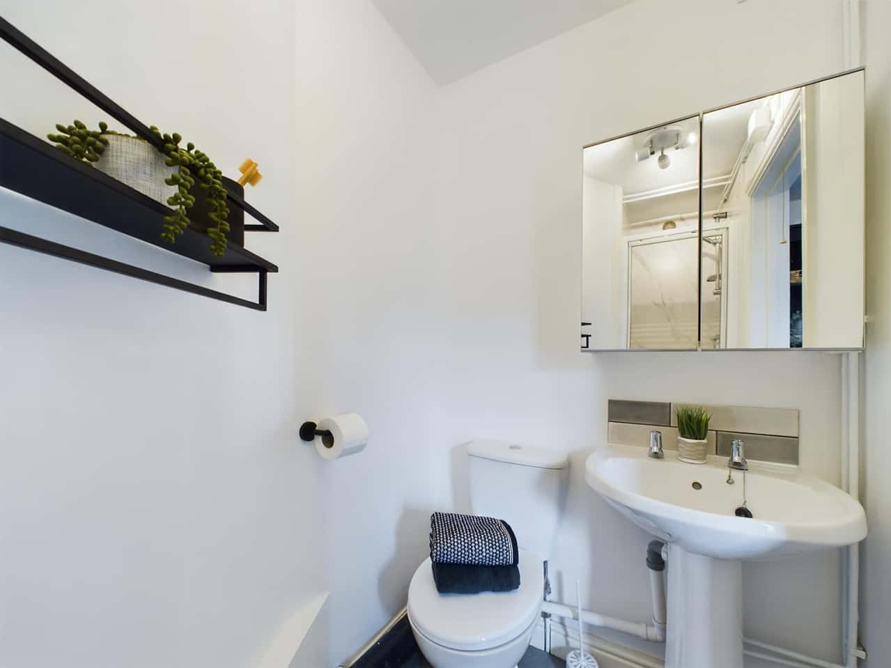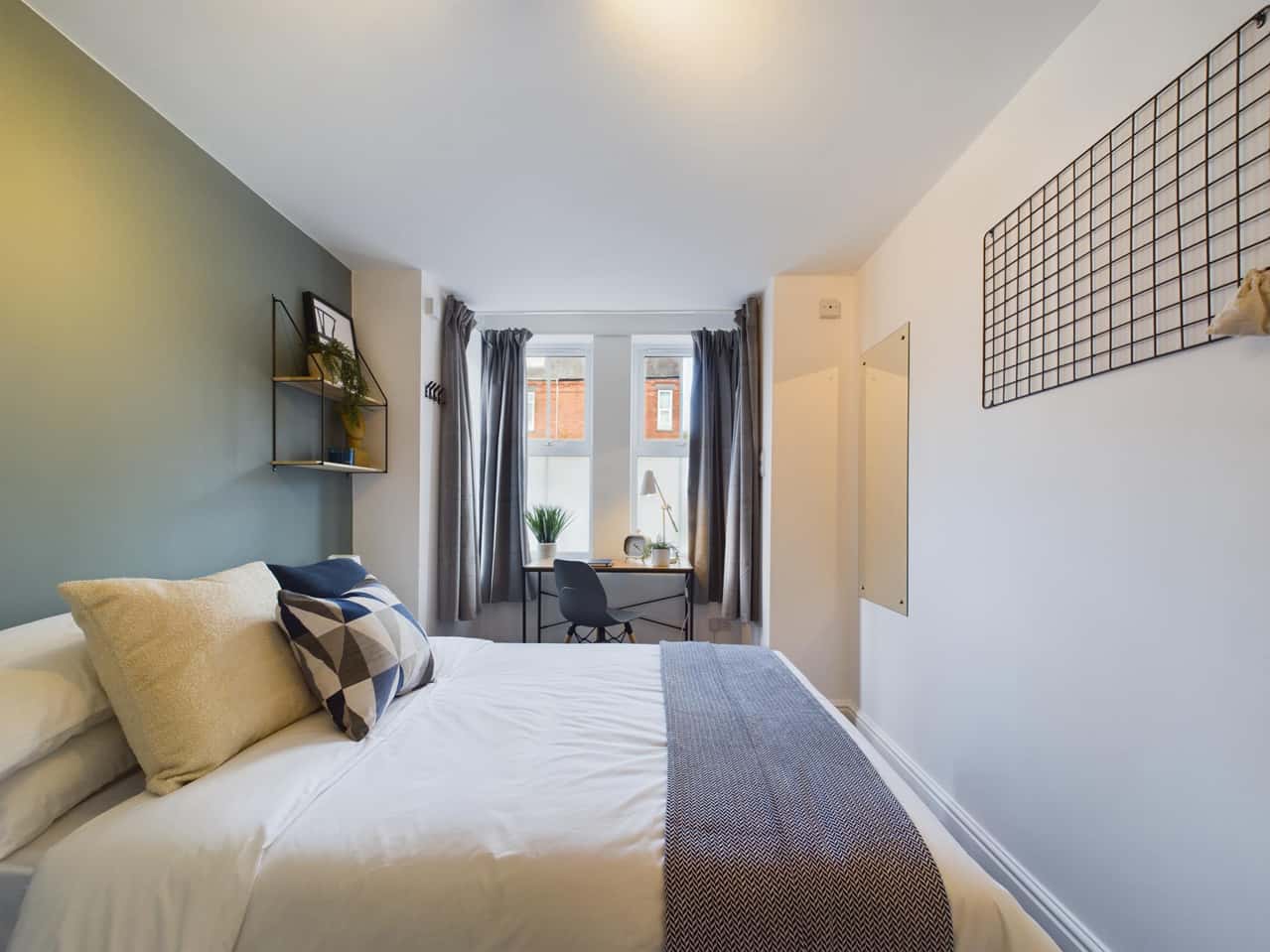 This contemporary residence, offers four spacious double bedrooms adorned with desks, comfortable chairs, and ample storage. Complemented by two sleek bathrooms, the property ensures convenience and luxury.