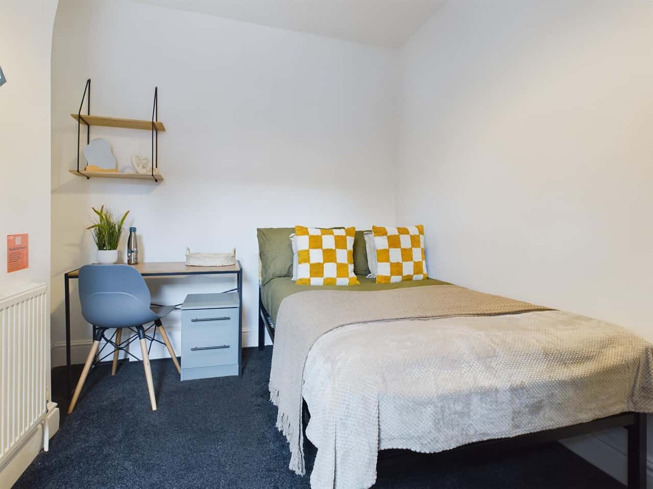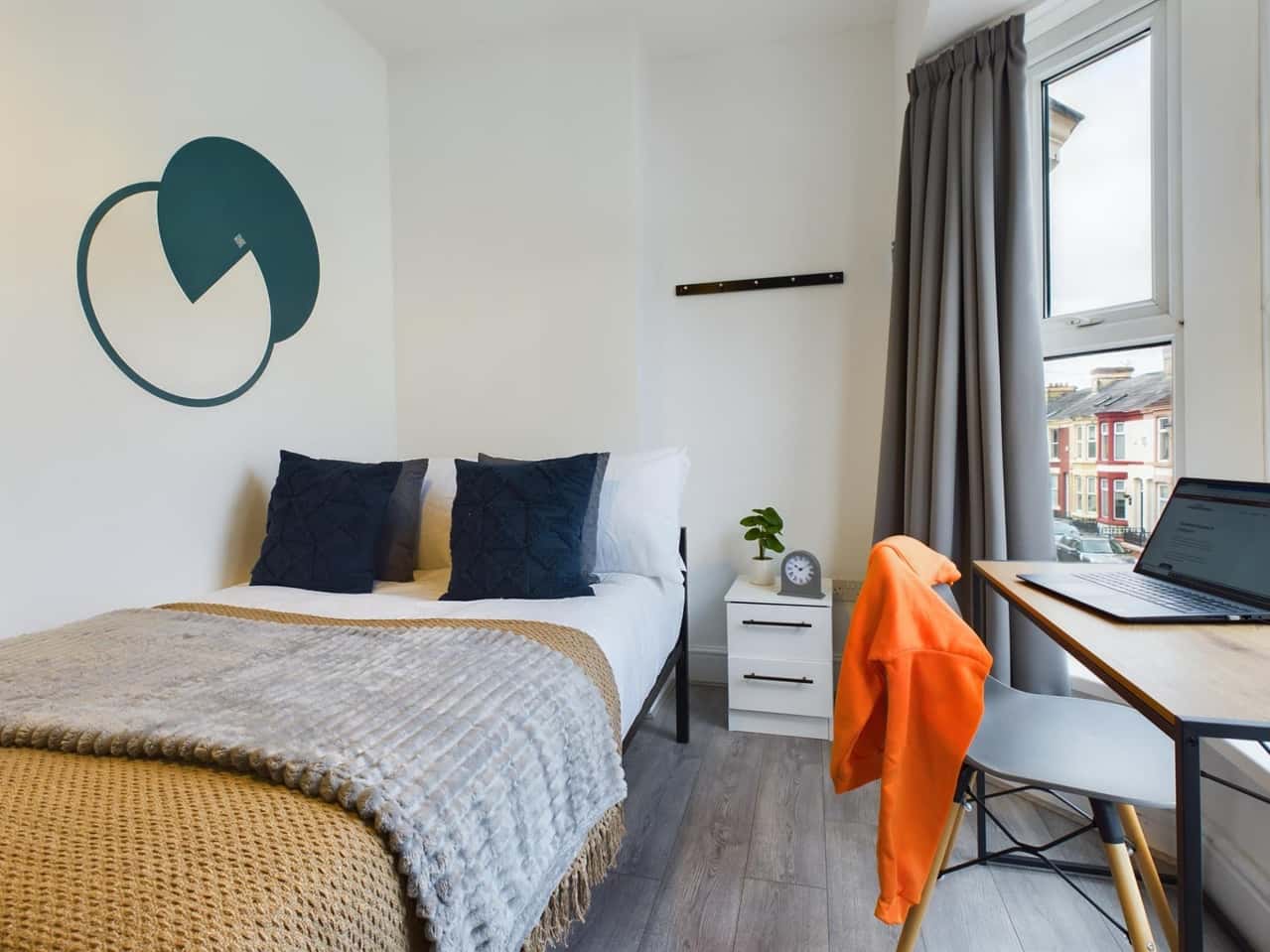 This refurbished four-bed property offers a modern and comfortable living environment, complete with four double bedrooms, a sleek bathroom, and stylish communal spaces. Each bedroom comes fully furnished with a desk, comfy chair, and plenty of storage, while the chic living room features big, comfortable sofas, a large flat-screen TV, and a spacious dining table for shared meals and socialising. The kitchen is equipped with modern appliances, multiple fridges, and a washing machine, and superfast broadband runs throughout. Every piece of furniture has been interior-designed to maximise comfort and style.