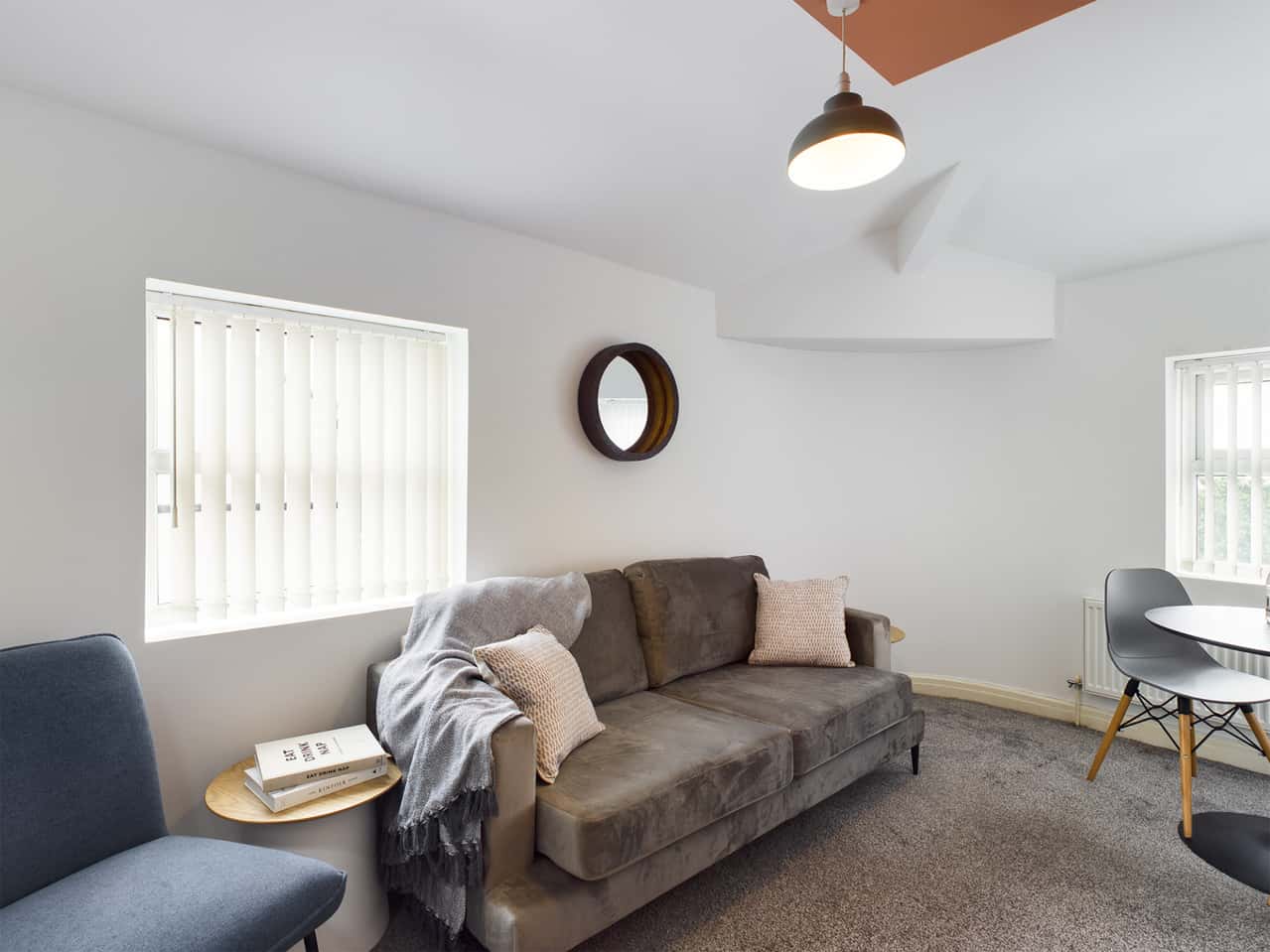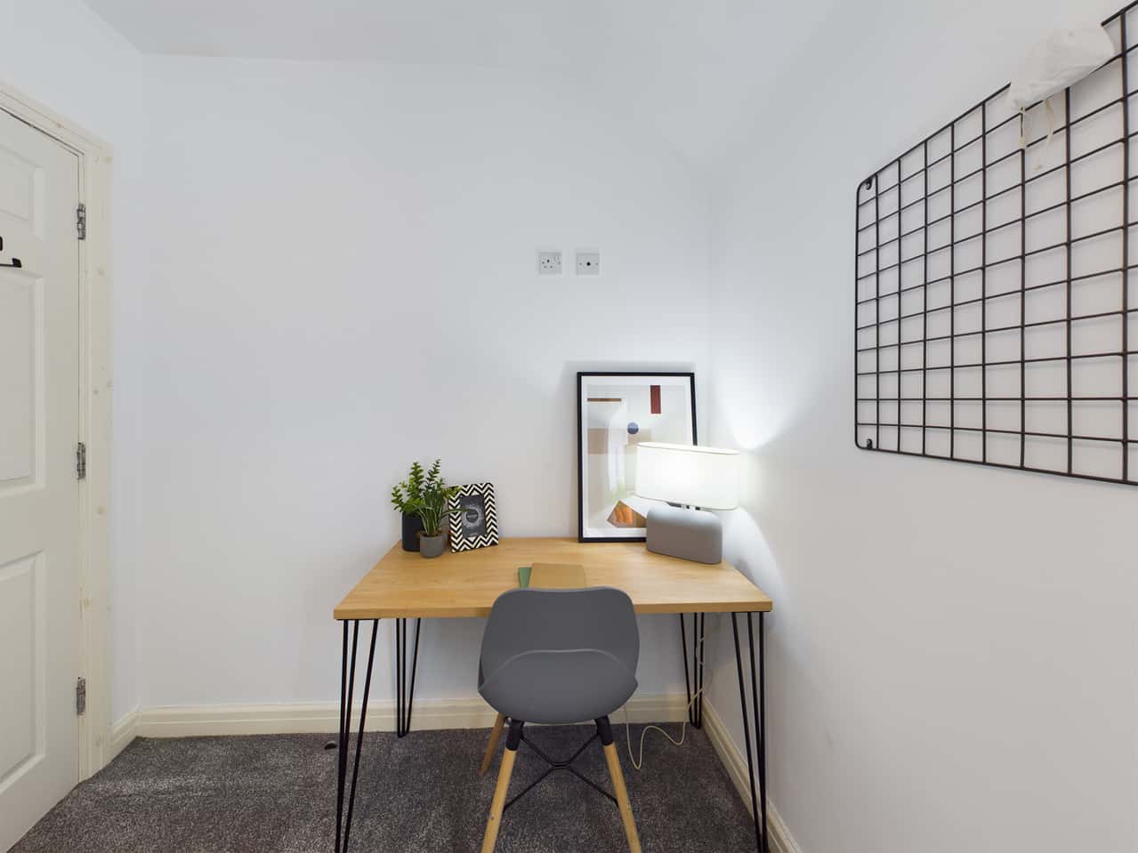This stylishly renovated property, features two double bedrooms furnished with desks, comfortable desk chairs, and ample storage, along with a modern bathroom. The chic living room offers spacious sofas and a large flat-screen TV, ideal for relaxed gatherings, complemented by a generous dining table for communal meals. The kitchen is equipped with modern appliances, multiple fridges, and a washing machine. Every piece of furniture has been carefully selected to ensure maximum comfort and style.