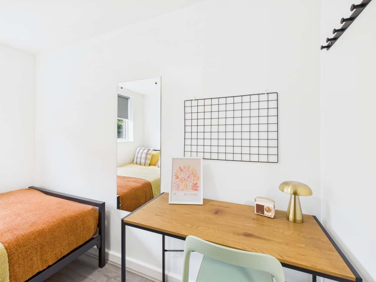 This stylish two-bedroom apartment offers modern student living in a well-connected location. Each bedroom includes a desk, comfortable chair, and ample storage, while a private balcony adds a rare outdoor space to enjoy. The spacious living room features a plush sofa and large flat-screen TV perfect for relaxing or socialising with a dedicated dining area for shared meals and gatherings. The kitchen is fully equipped with modern appliances and a fridge freezer, and communal washing and drying facilities are available on site. Laundry facilities are available for approx. £4.60 per cycle.