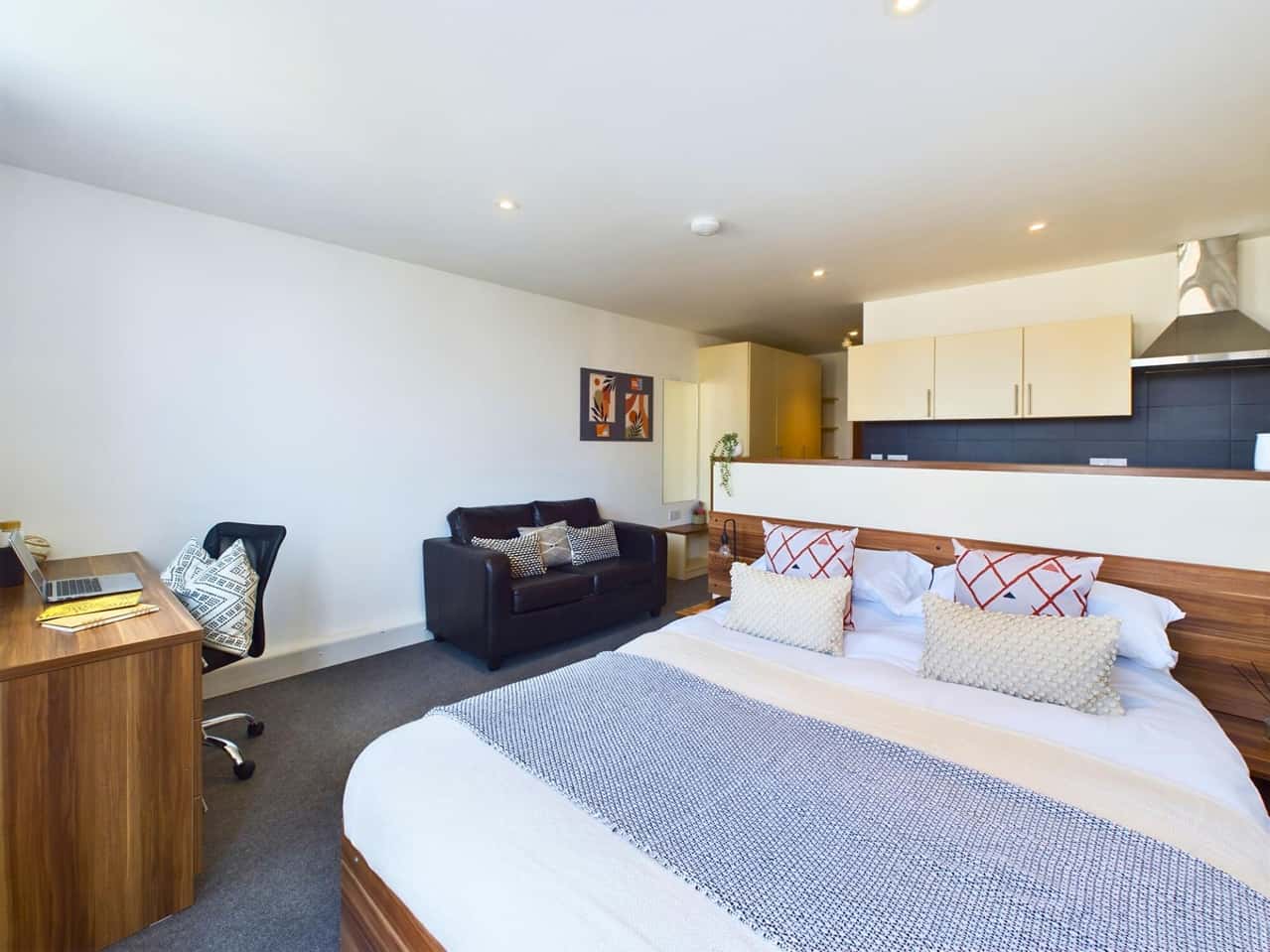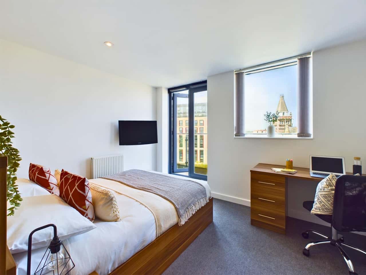 Our Gold XL Studio provides extra floor space and comes furnished with a double bed with double wardrobes and study area. It also comes with a modern kitchen, bathroom, and a living area with a french balcony for when you want to get some fresh air. With Up to 100Mbps WIFI, you can stream your favourite shows and work on your assignments without any issues. The best part is that Windsor Court is located in the city centre with great transport links and is a short walk away from LJMU and The University of Liverpool. Hurry up and book your studio today!