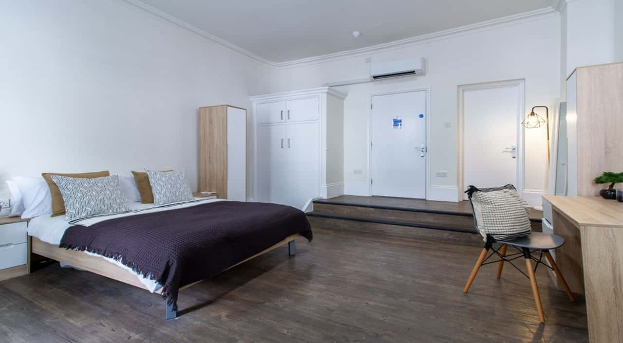 The Platinum Studio is the largest room in the building measuring 52m² The apartment is fitted out with contemporary furniture including a double bed, kitchenette with integrated appliances and a modern en-suite bathroom. With unlimited 100Mbps WIFI and newly refurbished common areas, outdoor courtyard, comfortable snug and on site laundry. If luxurious student living is what you're after, choose Platinum. Dual occupancy is available for this room style, get in touch to discuss.