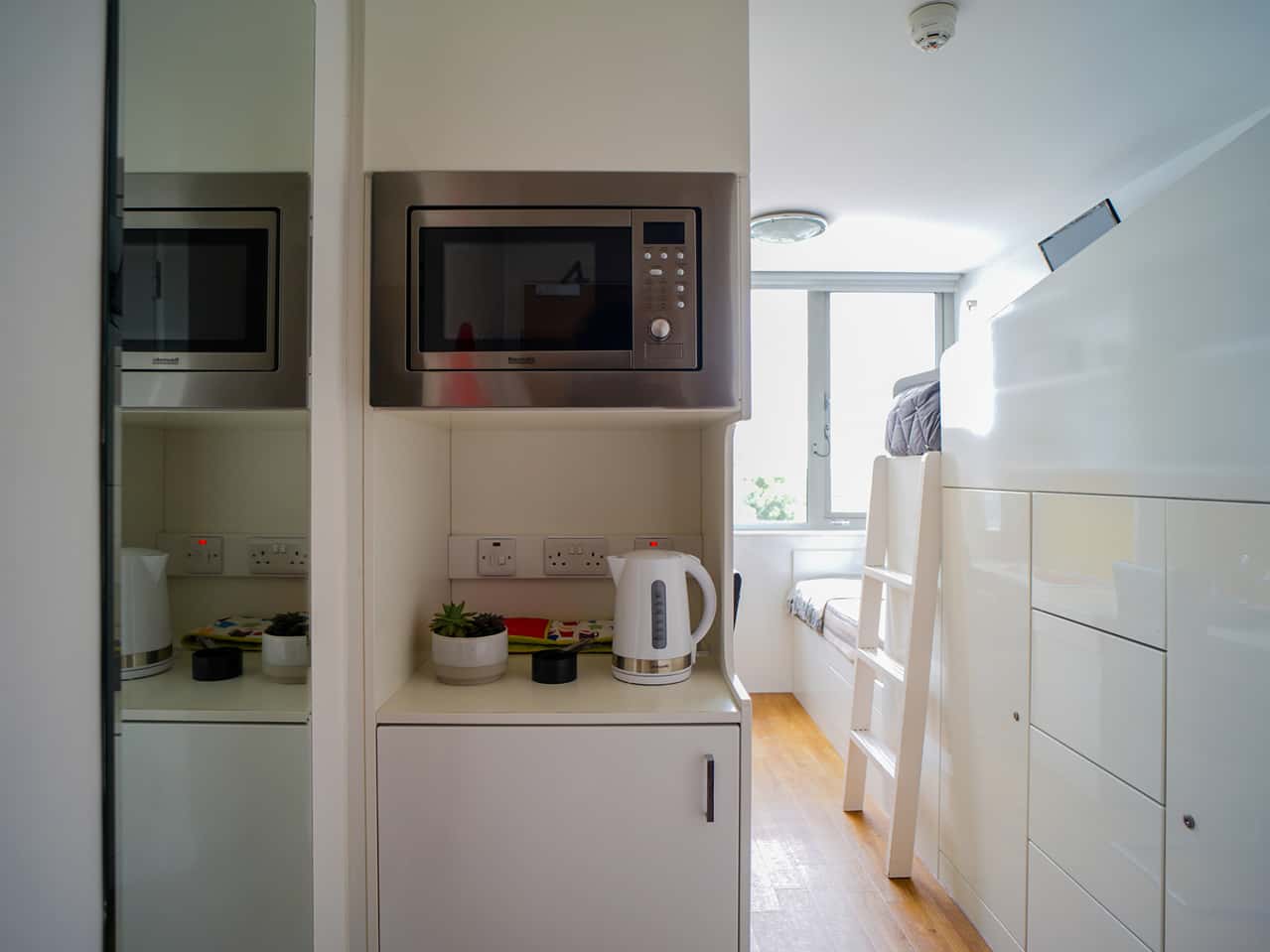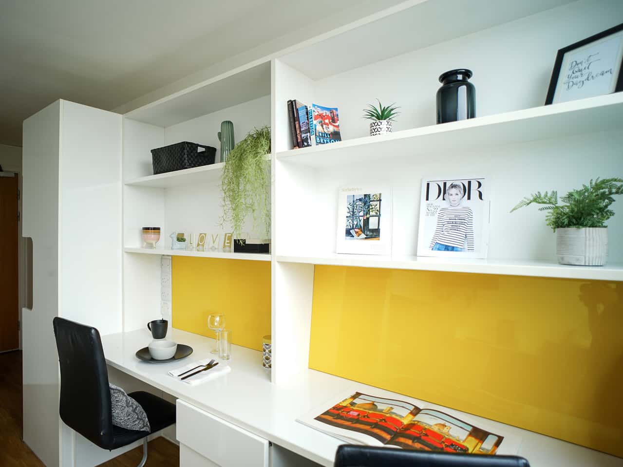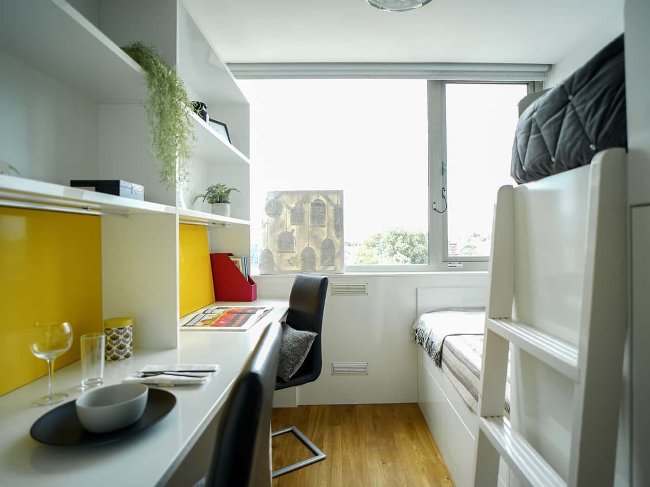 For students wanting their own space, a selection of our Twin Ensuites are available as Single Occupancy rooms too! Our Twin ensuite bedroom measures around 12.5 m², with two comfy single beds and two wardrobes for all your bits and bobs. With two fitted study desks and chairs, you can crack on with your studying in peace! When it’s time to wind down, chill out and watch some TV or surf the web with your 100Mbps WIFI.