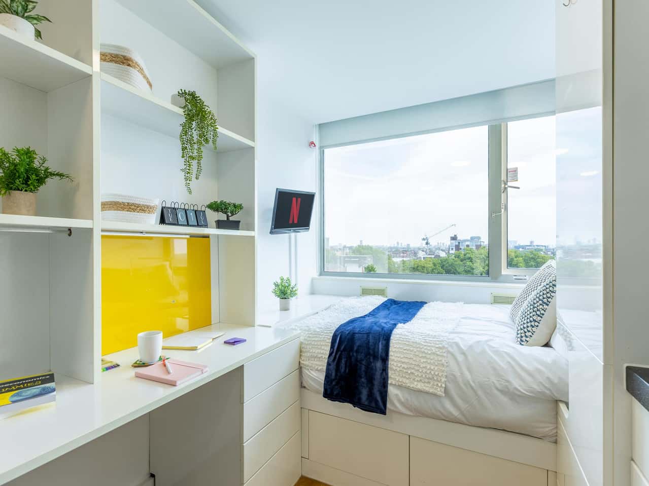 Our self-contained Sapphire View Studio is located on a higher floor with big airy windows. Measuring around 13m², your studio comes with a comfy ¾ bed, perfect to snuggle into after a long day at uni. With an en suite bathroom, a fully equipped kitchenette, a handy study area and a wardrobe, you’ll feel right at home in no time. On an evening, sit back, relax, and watch a film, or surf the web with your 1Gbps WIFI!