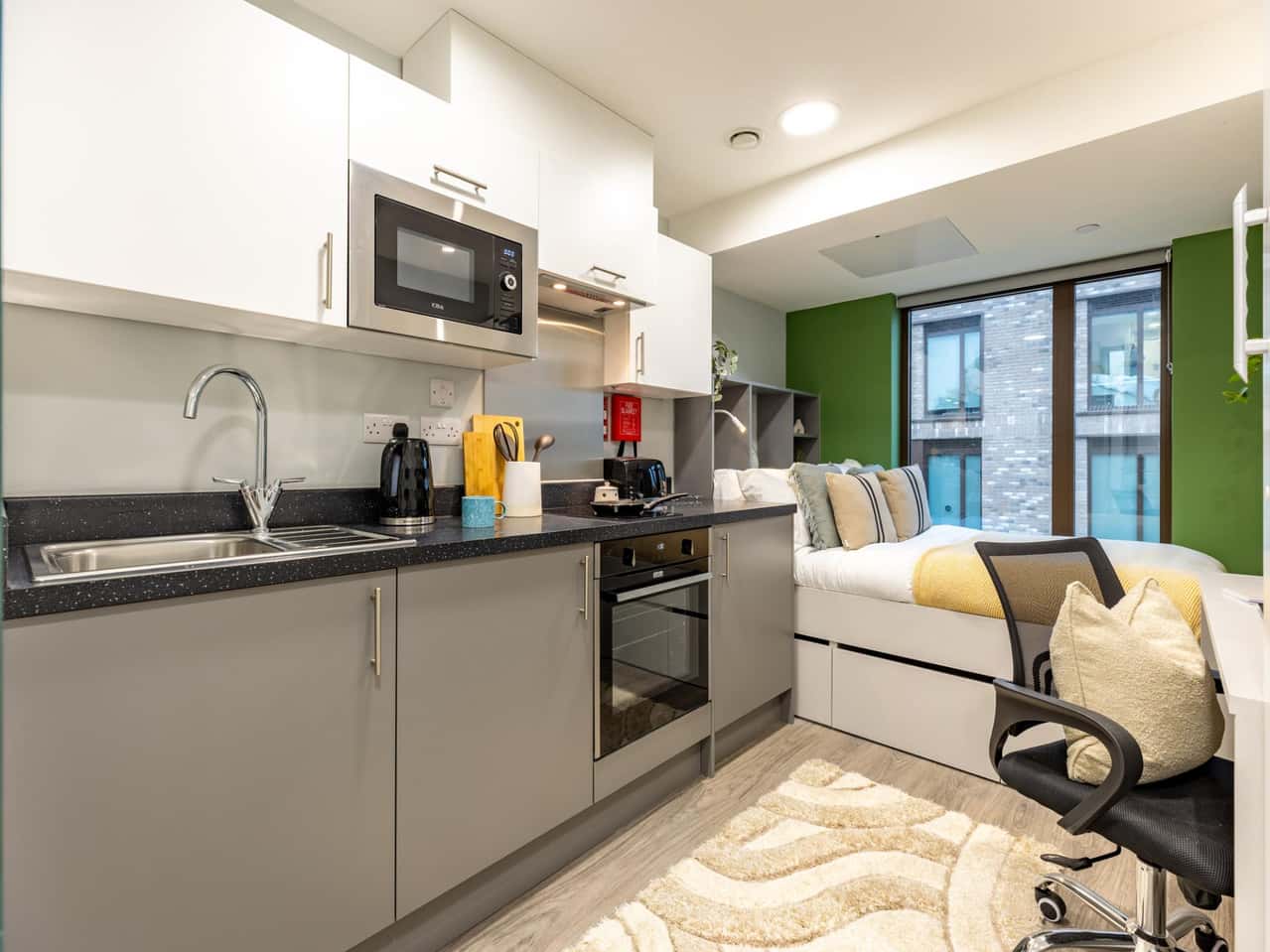 Indulge in the ultimate student living experience with the Gold Plus Studio at Venue Studios. It features a cosy bed, a spacious desk, private kitchen and a private ensuite, providing students with unparalleled comfort and convenience. Spanning around 16.1 - 16.7sqm, you have everything you need in one place! Book your studio today!