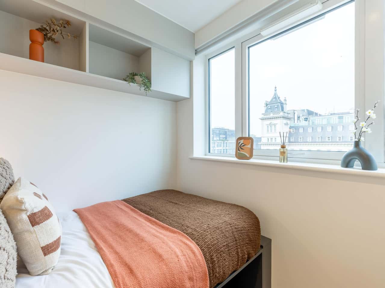 Discover our Gold Studios, located on Floors 5 and 6, complete with in-room air conditioning for your comfort and convenience. Each studio features a comfortable ¾ bed, study desk and chair, cupboard, a private bathroom and a modern kitchen, ready for your move-in. These luxurious studios ranging from 12.38 to 17.4 sqm come with modern and sleek specifications to elevate your living experience. You can also explore the building's amenities, including study rooms, a private dining room, and more. Book your studio today for a premium student living experience!