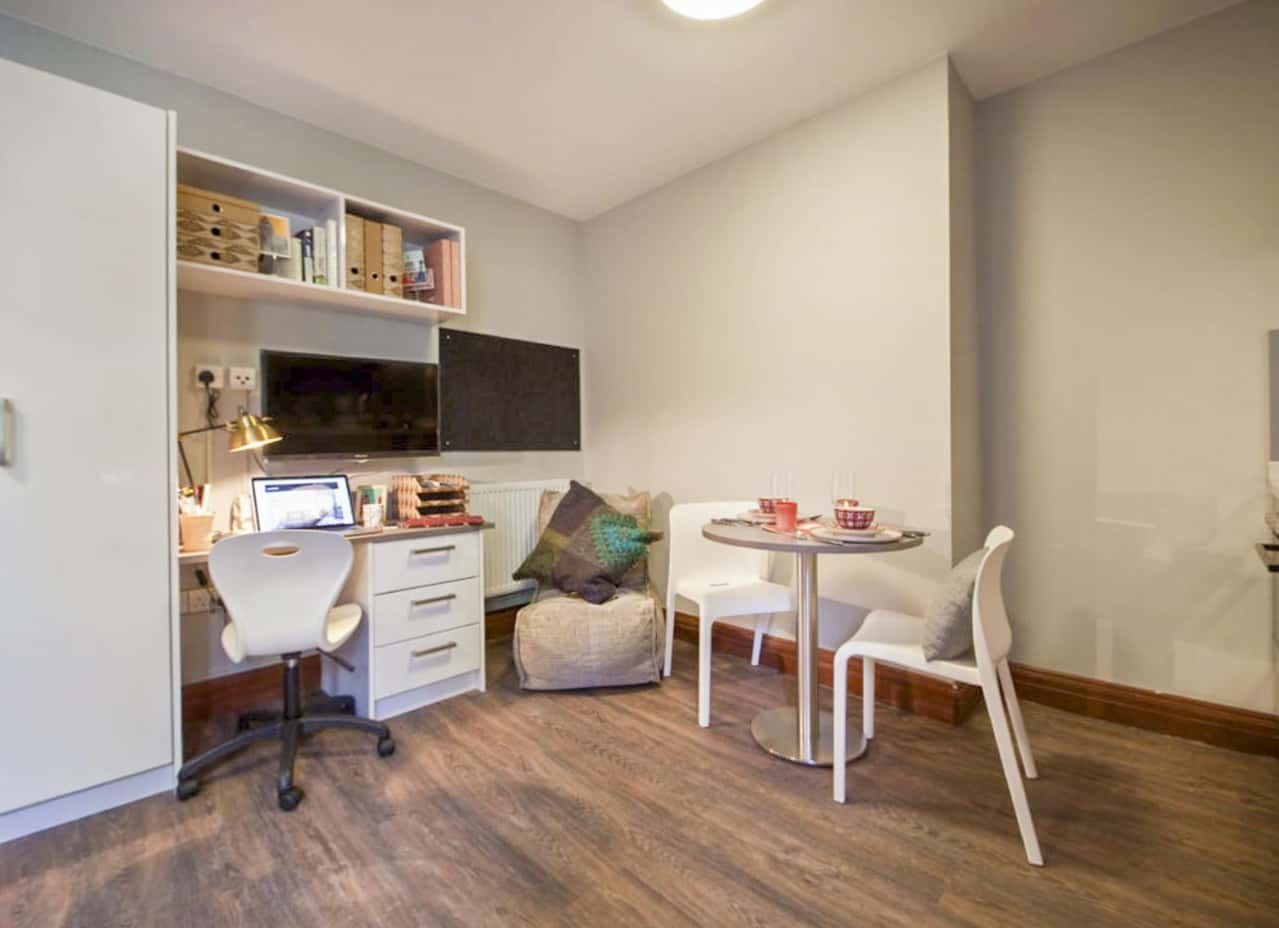 Upgrade your living experience with our Premium Studio, offering more space and all the essentials you need for a comfortable stay. The room comes furnished with a generous 3-4ft bed, a spacious study desk with a chair, and ample storage options, including a wardrobe, chest of drawers, and shelves for all your belongings. The private kitchen is equipped with a microwave, oven, and cooking hob, perfect for preparing your favourite dishes.