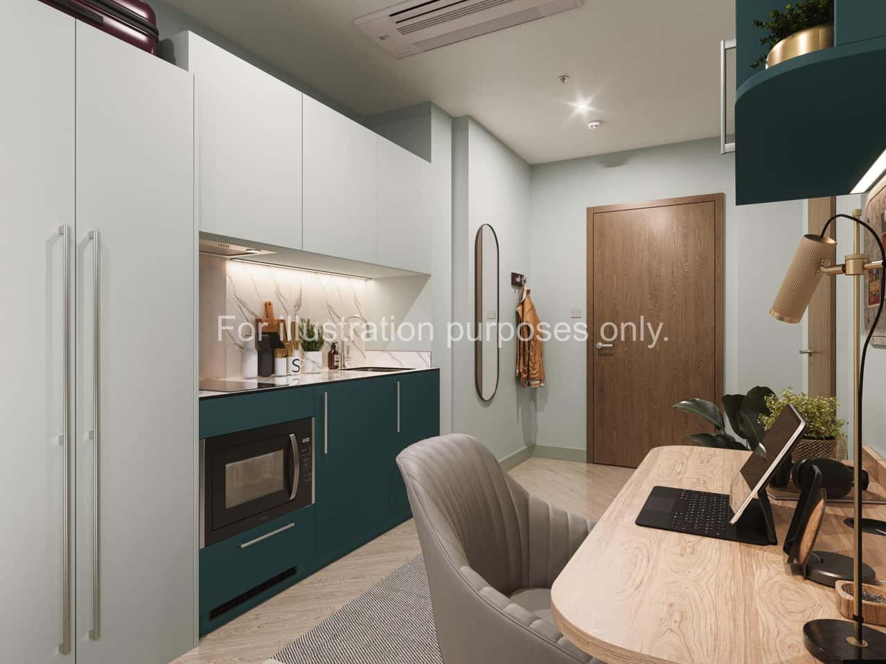 Located on the ground floor through to the 6th, the Silver Studio provides 17 - 18.6 sqm of space to live, study, and relax. It features a comfortable bed for restful nights, a study desk and chair to support your academic goals, and a private washroom for privacy and ease. Ample storage ensures everything has its place, while the kitchen equipped with essentials is ready for your culinary adventures. This studio strikes the perfect balance between function and comfort. Book your Silver Studio today and settle into your ideal student home!