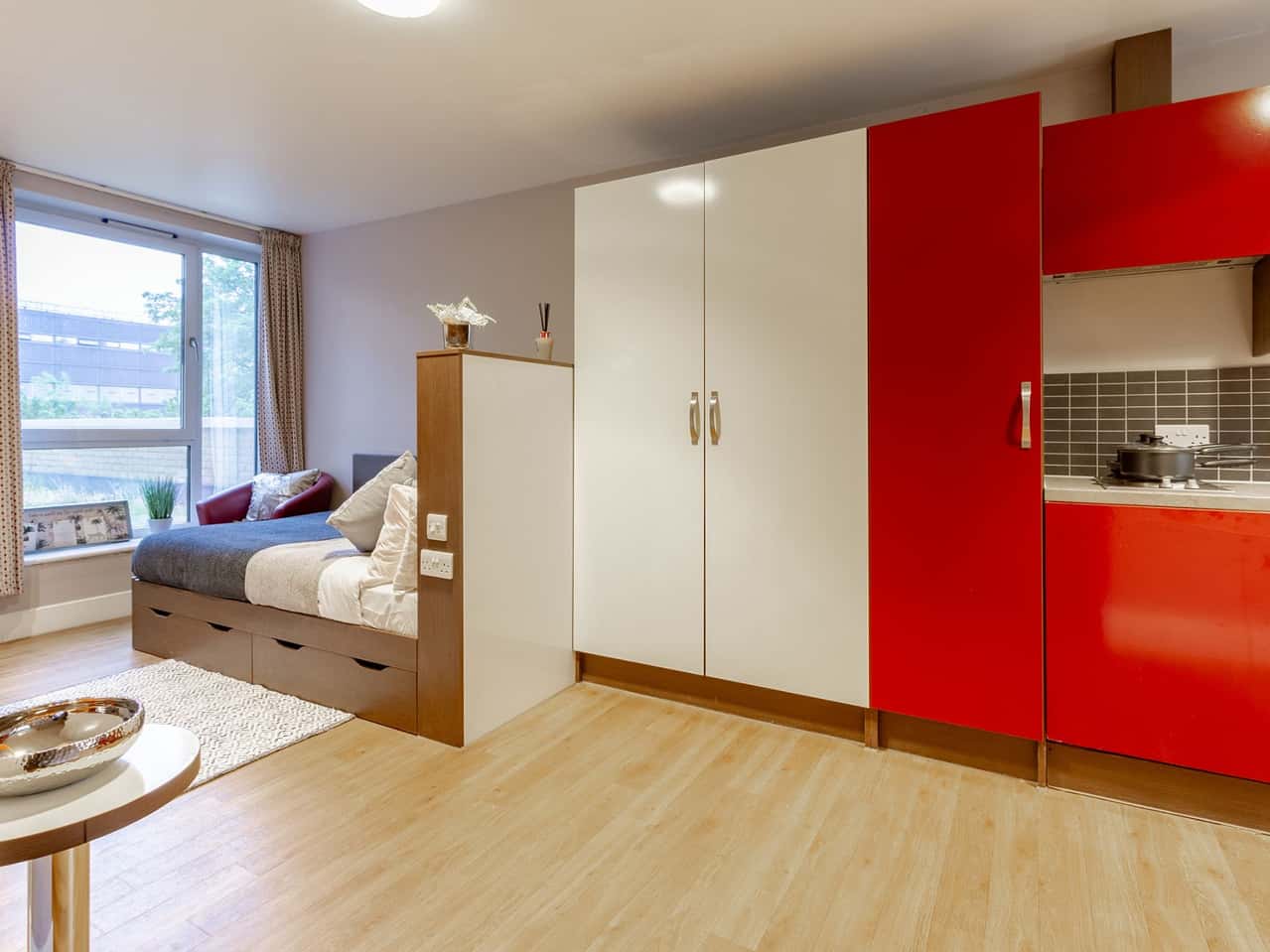 If you want bags of space, you’ll love our Gold Studio! Measuring 20m², live your best student life in our self-contained studio with a comfy ¾ bed and an en suite bathroom. Crack on in your study area and cook something delicious in your very own kitchenette! Get ready to relax in your dining space and watch a bit of TV when it’s time to wind down after a long day. We’ve got you covered with our Gold Studio!