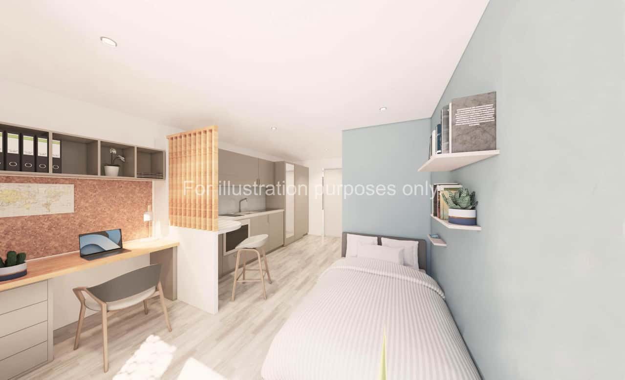 The Premium Plus Studio offers between 22m² and 24m² of living space. This studio includes a cosy bed, a stylish ensuite washroom, and a study desk and chair for focused work. The cupboard with ample storage is perfect for organising your belongings. The private kitchen gives you the independence to cook and dine whenever you please. Spacious, modern, and inviting, the Premium Plus Studio is your perfect match. Book your room today!