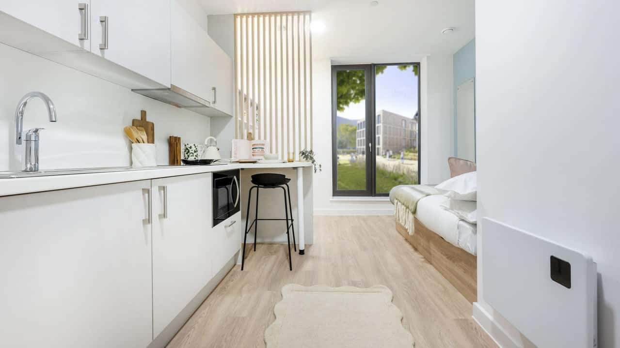 The Premium Studio offers a stylish layout ranging from 19.2m² to 21.6m². This room includes a plush bed, a modern ensuite washroom, and a dedicated study desk and chair to ensure a productive environment. The cupboard with ample storage provides space for all your essentials. The private kitchen is perfect for creating delicious meals, giving you full independence. Designed for those who value comfort and convenience, the Premium Studio is your ideal home. Don’t wait—secure your Premium Studio today!