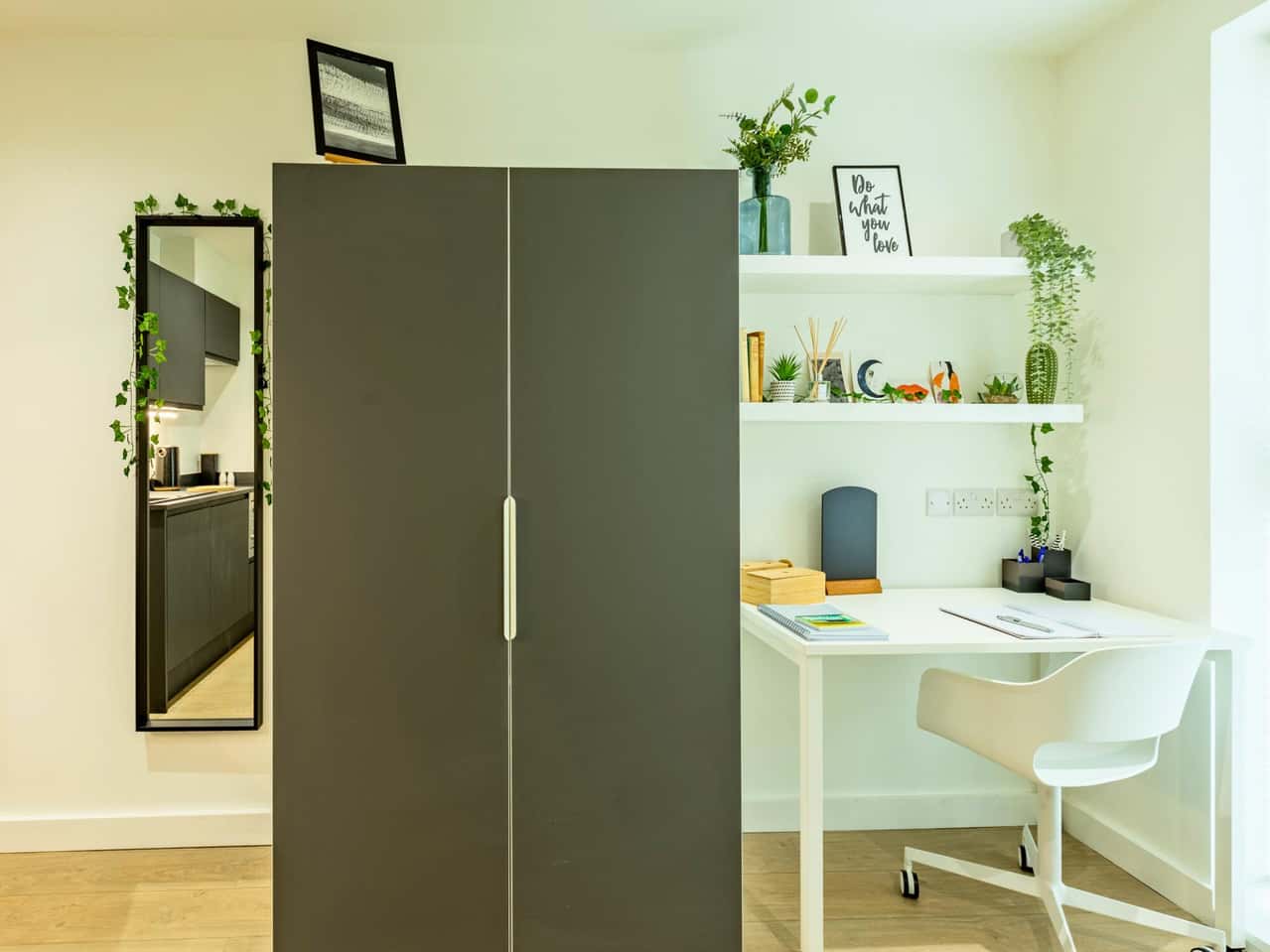With accessible bathrooms and increased floor space, you’re going to love our deluxe studio! Located on the ground floor, the private en suite comes with your very own modern kitchenette, bright and airy floor-to-ceiling windows, and heated towel rails. Crack on with uni work at your very own desk and feel right at home in no time with the bags of space provided. When the day is done, you can relax by watching TV in your studio, burn some calories at the on-site gym or chill out in the roof garden with your mates.